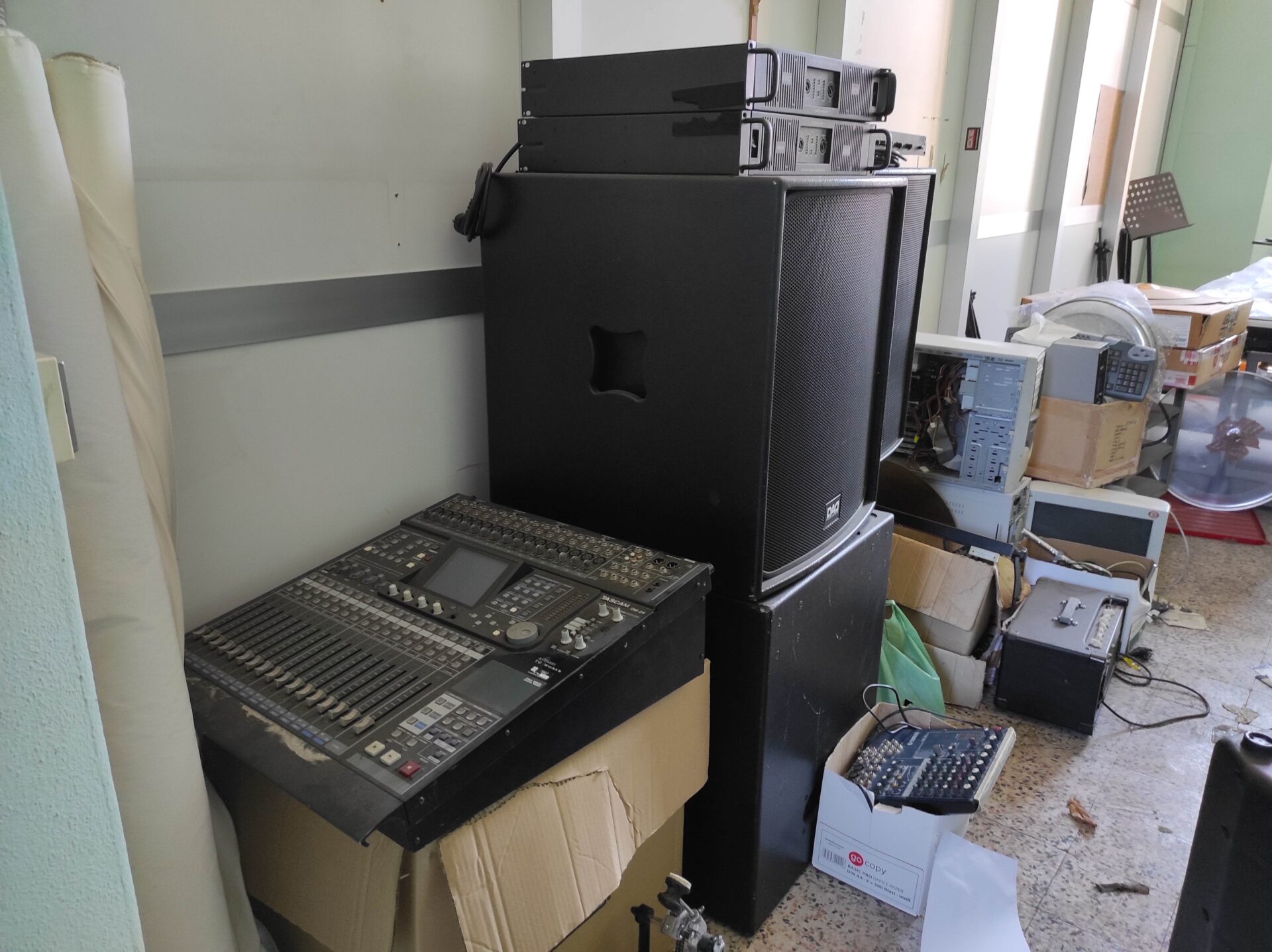 72mila euro. Tanto costarono nel 2008 al Comune di Como le batterie, i mixer, i computer, le sale insonorizzate, gli arredi che oggi (ma da molti anni) sono accatastati a prendere polvere al piano terra dell’ex scuola “Decio Raggi” di via Colonna. La storia delle sale prova, originariamente allestite in alcuni spazi dell’ex ospedale psichiatrico San Martino, è lunga e nota.