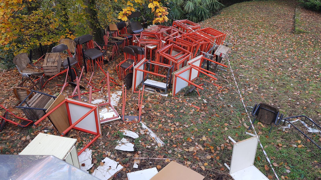 Ah sarebbe il vicino a lanciare banchi e sedie nel cortile? Che storia..