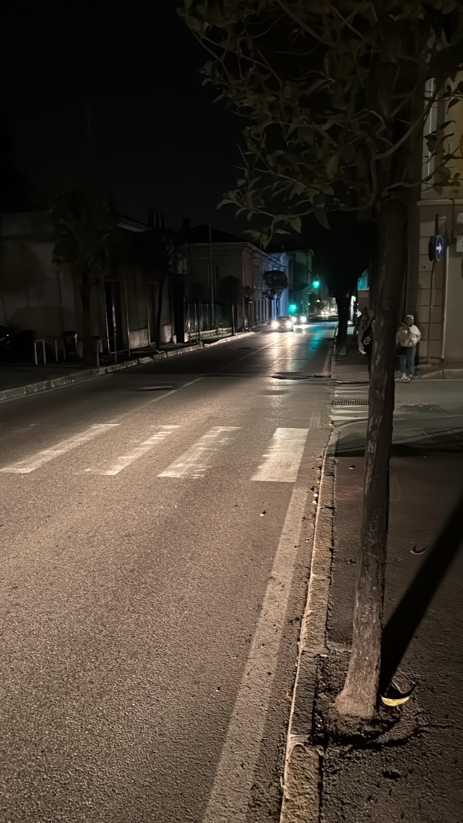 Segnalazione del lettore questa sera da via Dante, a un passo dal centro storico, dove non molto dopo le 22 larga parte della strada risultava completamente al buio. Se si tratti di un problema momentaneo o più profondo al momento non possiamo dirlo ma la situazione documentata è questa.