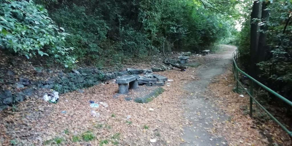 “Esiste un pezzo di città completamente abbandonato a sé stesso – ci scrive un lettore che ha osato percorrere il sentiero in fondo a viale Geno – nessuna manutenzione, nessuna pulizia. È una cosa normale? Gli uffici comunali sanno che esiste? È pericolosissimo e in condizioni igieniche pessime e sistemato sarebbe un gioiellino con vista sul lago”. E le foto che ci invia raccontano di una situazione identica a quella di un anno fa: un falò improvvisato costruito con pezzi di panchine di pietra divelte, resti di picnic, erbacce, escrementi e persino una vera e propria discarica di sacchi della spazzatura.