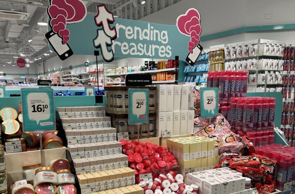 L’esperienza di acquisto è studiata per trasformarsi in una sorta di “caccia al tesoro”. Il negozio è infatti strutturato come un labirinto che invita la clientela a esplorare i corridoi, scoprendo oltre 4000 articoli tra prodotti per la cura della persona, igiene orale, capelli, make-up e articoli per la pulizia della casa. L’assortimento è dinamico e viene costantemente aggiornato con l’arrivo di 100 novità ogni settimana, alternando brand famosi (come L’Oréal, Colgate, Gillette, Max Factor, Nescafé e Kinder) a chicche esclusive ancora da scoprire.