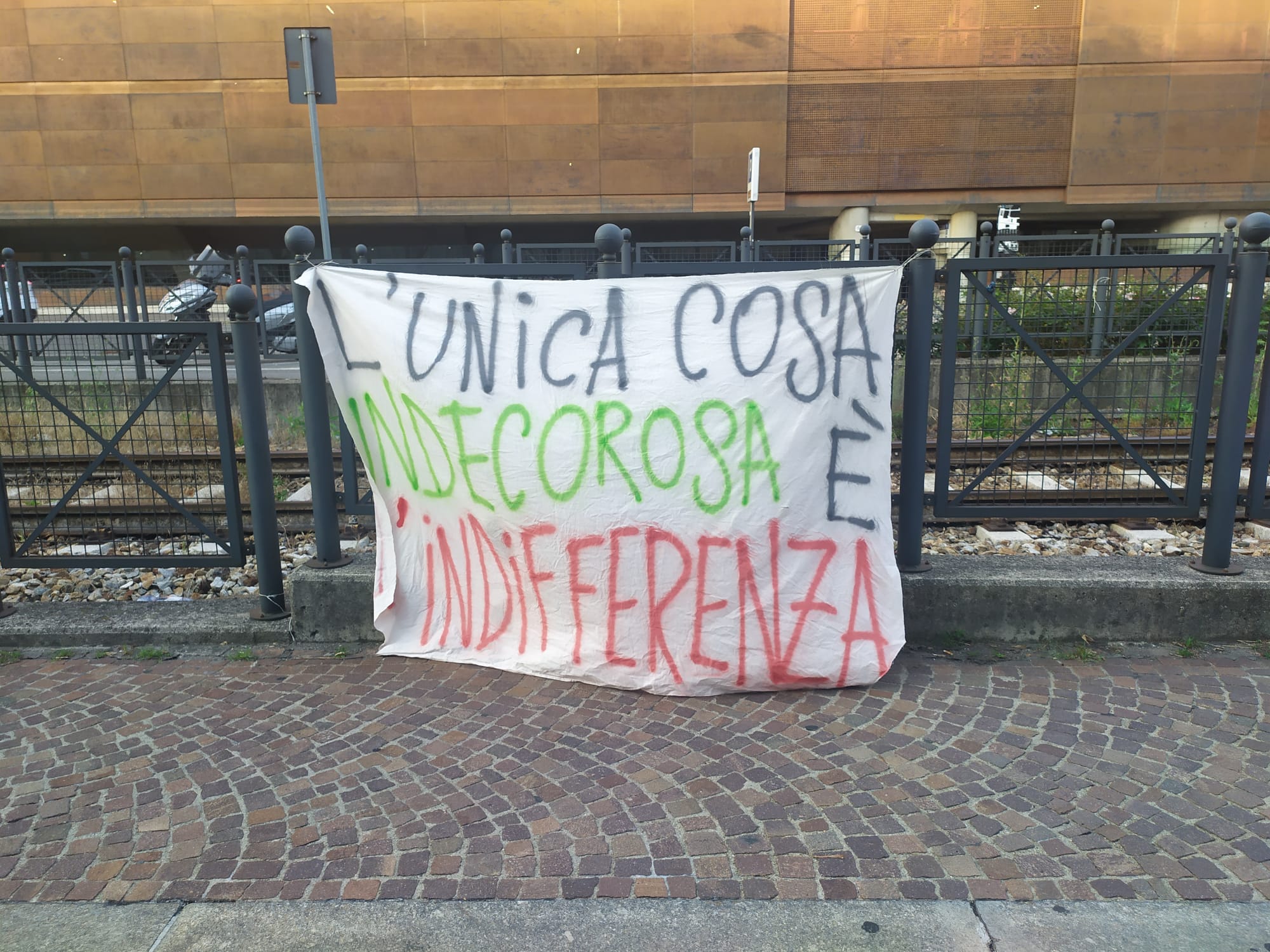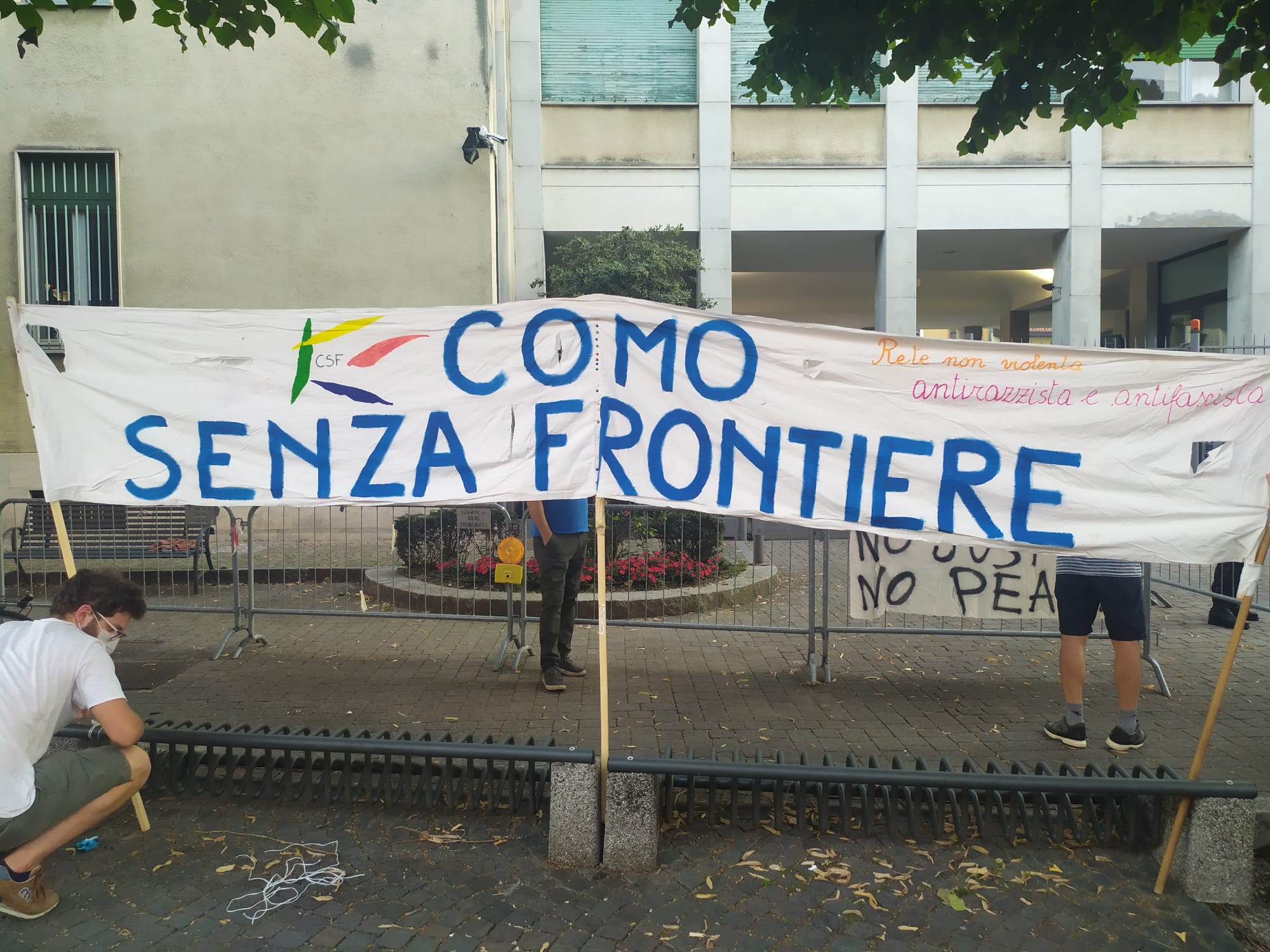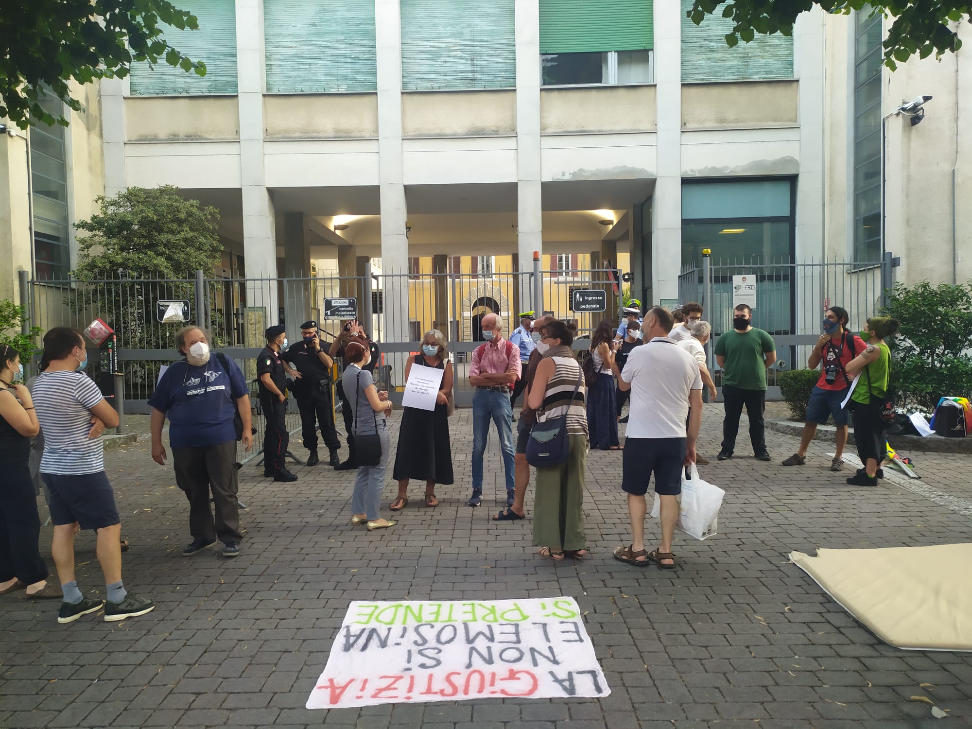 Una trentina di persone questa sera davanti al Comune di Como per manifestare in seguito l’intervento di sanificazione, oggi, all’ex chiesa di San Francesco ormai dormitorio improvvisato, e sovraffollato, dopo la chiusura di Emergenza Freddo in via Sirtori.
