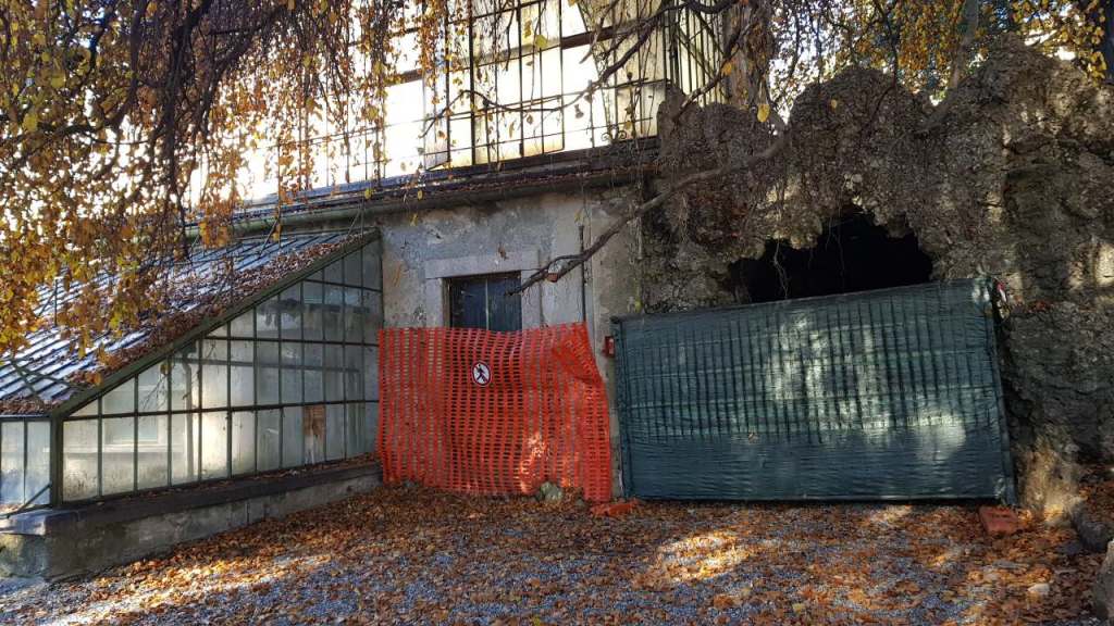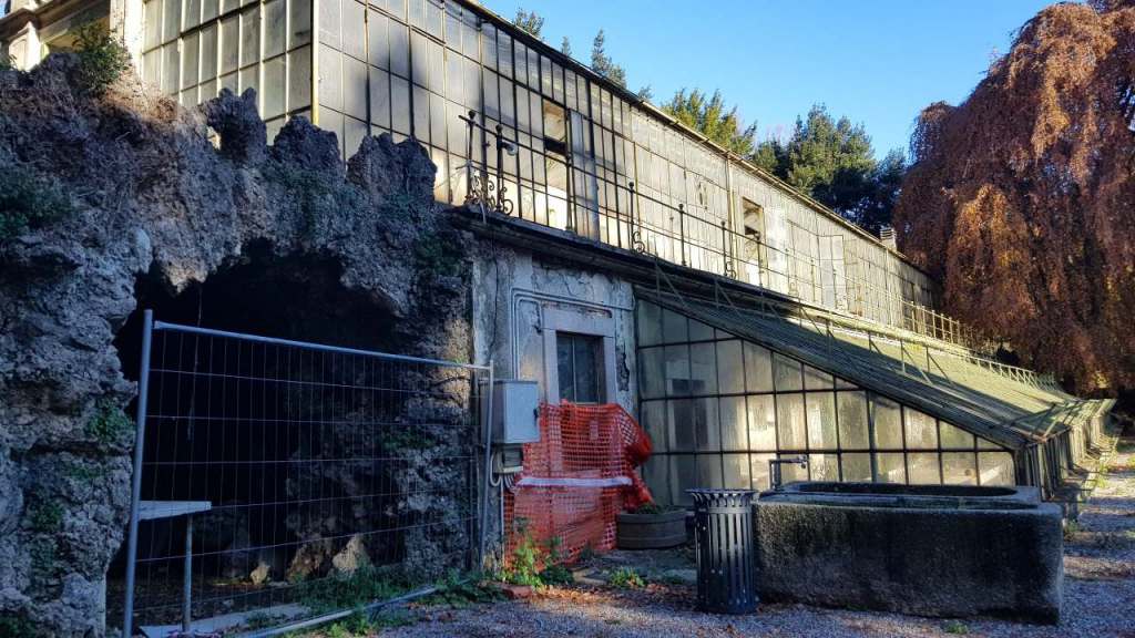 “Data presunta di inizio lavori 6 febbraio 2017. Durata 420 giorni”. E tutto sommato, questo articolo sul recupero e restauro delle serre di Villa Olmo – comprese nel maxi intervento “Tra ville e giardini. Navigare nella conoscenza” – potrebbe anche essere finito qui. Potrebbe cioè limitarsi all’impietoso cartello affisso al cancello che introduce all’estensione del parco sottostante, dove campeggiano la dimora del Cantoni e il suo parco-orto botanico.