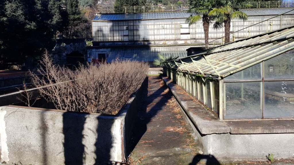Le grandi strutture che un tempo ospitavano la messa a dimora delle piante ornamentali del Comune di Como versano in uno stato di totale abbandono tra vetri rotti, porte spalancate sul nulla, degrado imperante e baldanzoso.