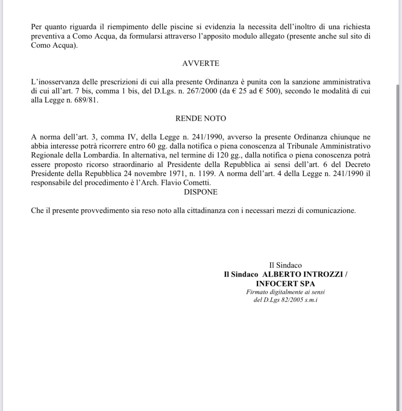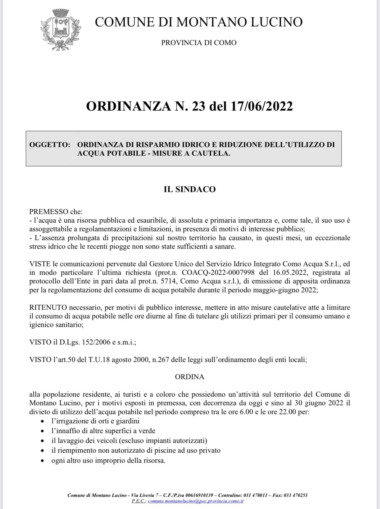Ecco l’ordinanza completa (in questo caso del Comune di Montano Lucino):