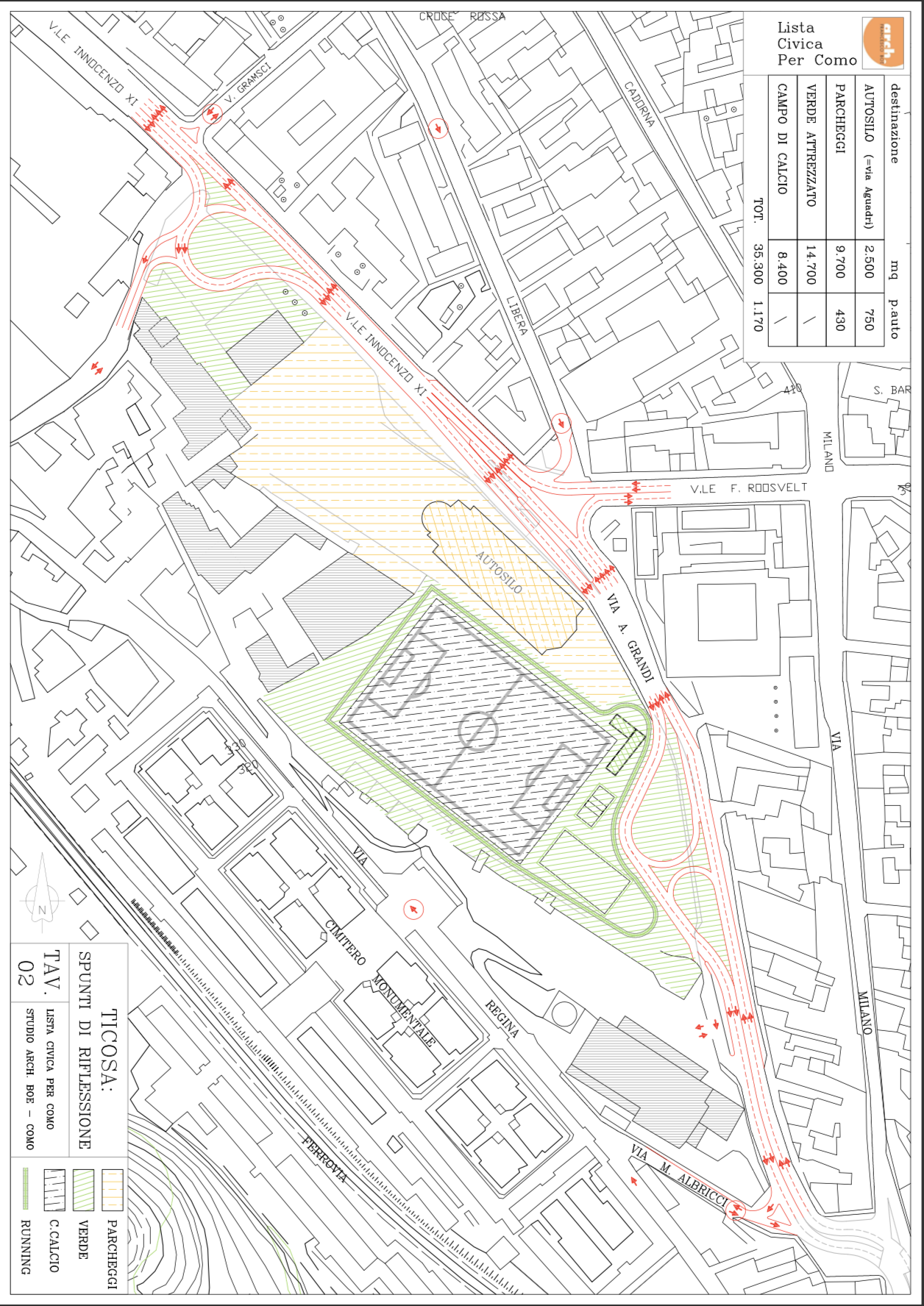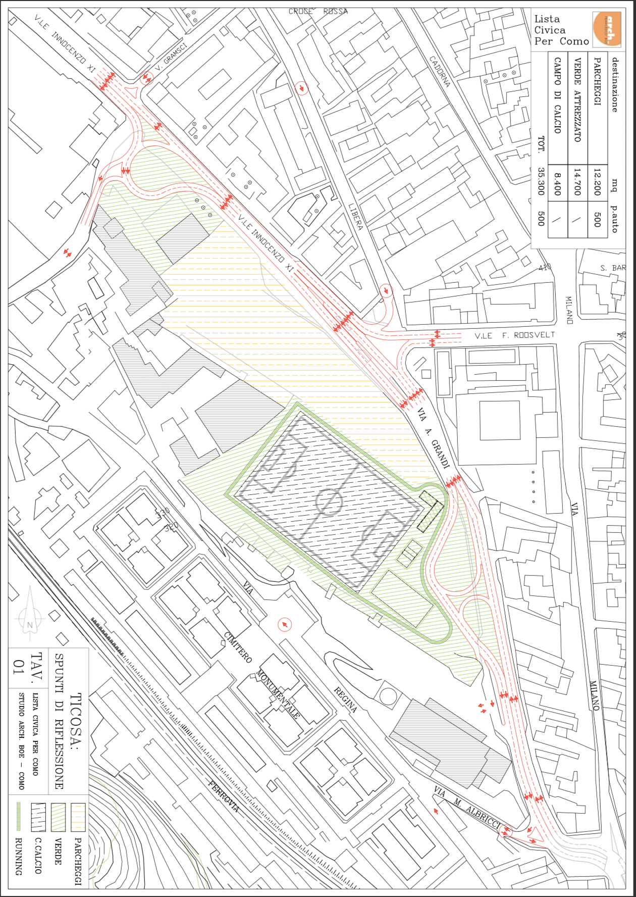 Ma quanti parcheggi vogliono fare??? E poi i parcheggi devono essere di cintura non si puo ancora pensare al Gallio ed all’ ex Danzas in pieno centro….Sulla viabilità si puo anche essere d’accordo ma il campo di calcio proprio no! Un campo a 11 in convalle (a parte lo stadio) si potrebbe fare allargando leggermente quello che esiste già all’interno del san martino. Questa è un’area che deve essere maggiormente valorizzata. Dal punto viabilistico una galleria che connette la tangenziale a Breccia.Il museo della seta alla santarella. Un autosilosok ma di non piu di 400 posti (se no si ingolfa la viabilità). Spazi aggregazione giovanile (perchè no con skate park), cohousing sociale il tutto con progettazione smart e ad impronta ecosostenibile con il primo esempio di “restituzione di suolo bonificato” (invece che di consumo) che sia da esempio e rilancio per tutta la città.