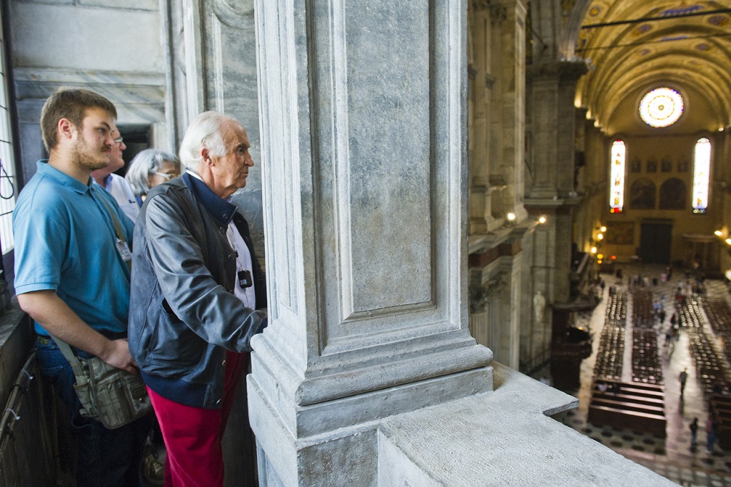 A gruppi – dietro contributo di 10 euro che sarò devoluto al progetto “Il cuore a scuola” – i partecipanti si sono inerpicati per scale e scalette all’interno della Cattedrale lungo il camminamento del Duomo.