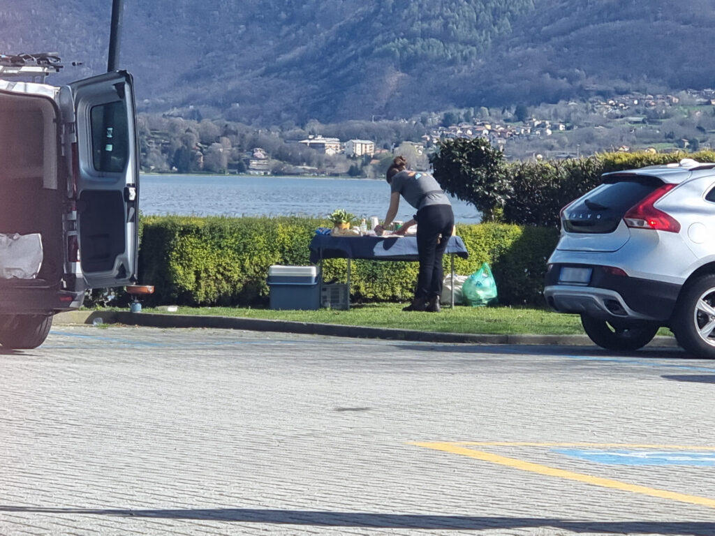 E’ il caso di quanto immortalato oggi da un nostro lettore attorno all’ora di pranzo a Domaso, dove lo spirito dei ‘pic-nic dove capita’ da parte di viaggiatori usciti da un mezzo a targa straniera, ancora non si è perso.