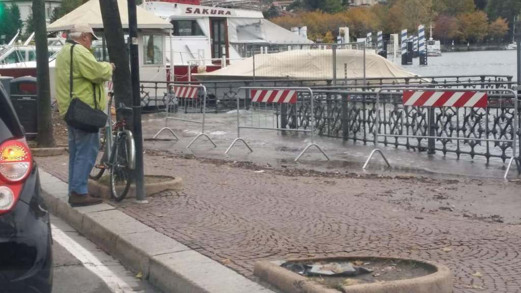 Complice l’innalzarsi delle temperature che ha velocizzato lo scioglimento delle nevi in Valtellina e il temporale di ieri sera, infatti, il livello l’acqua si è alzato fino a lambire la zona della ex biglietteria della Navigazione in Piazza Cavour.