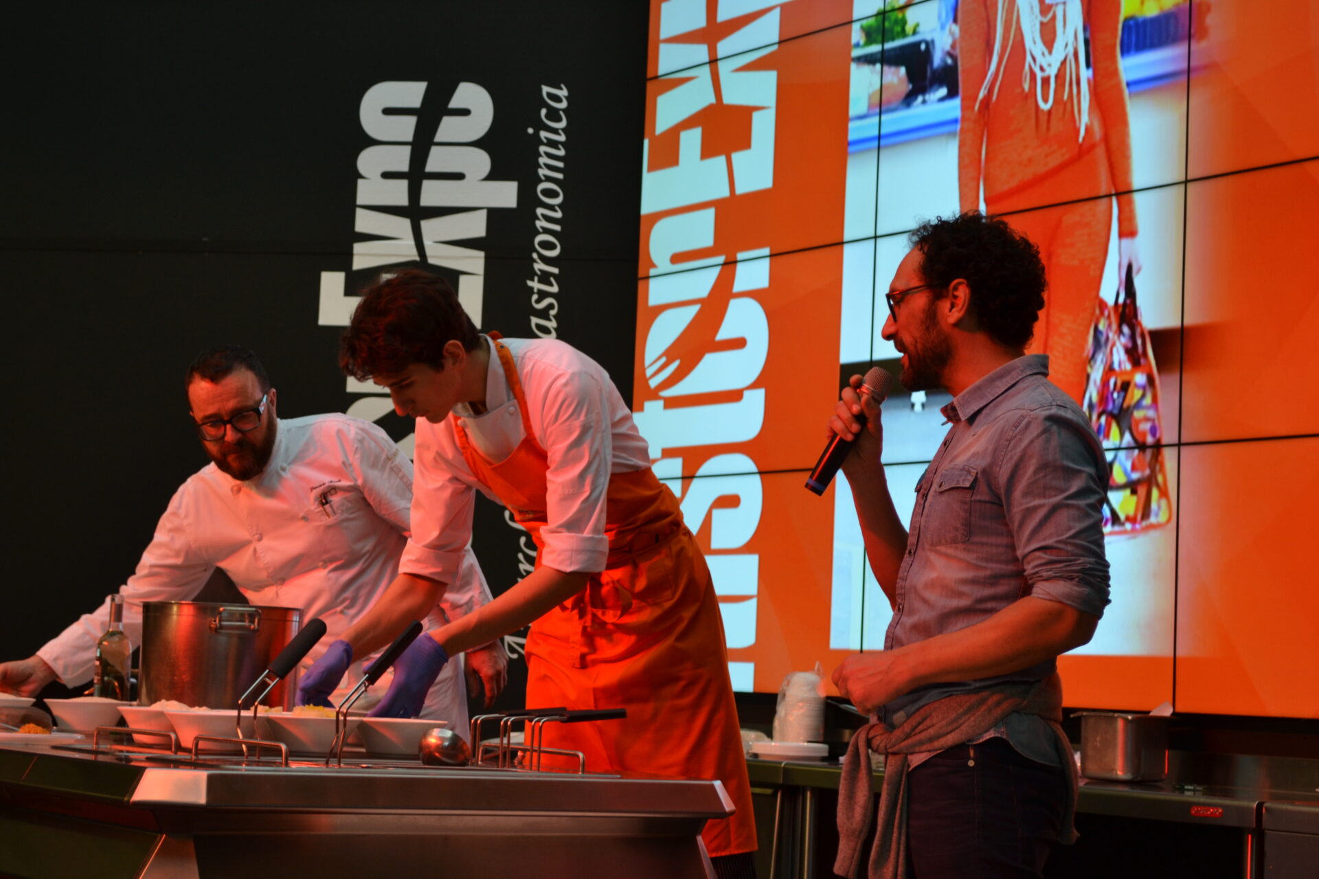 Sempre martedì, la mattina, sarà la volta dello chef Cristiano Tomei (L’imbuto, Lucca) con una Lectio Magistralis pensata per i ragazzi delle scuole professionali. Toscano doc, Cristiano Tomei è uno chef che sta facendo molto parlare di sè. Apre il suo primo ristorante a 27 anni direttamente in spiaggia per poi trasferirlo nel centro di Viareggio e infine a Lucca, dove oggi dirige oggi un’affiatata brigata di cinque persone e dove ha guadagnato la sua prima stella Michelin nel 2014. Nonostante i suoi piatti siano incentrati su gusti semplici ma originali insieme, non mancano le follie, come la carne macinata cruda che viene servita con grasso cotto e un pezzo di corteccia d’albero a fare da supporto. Una personalità come quella di Cristiano non poteva passare inosservata allo show biz e così, dopo una partecipazione a MasterChef Magazine, è stato arruolato da DMAX come giudice del programma I Re della Griglia, con Chef Rubio e dallo scorso novembre, è giudice con Alessandro Borghese e Gennaro Esposito della gara gastronomica in onda su TV8, Cuochi d’Italia.
