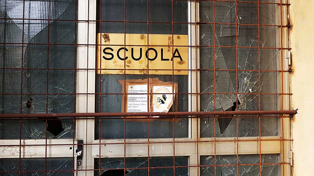 Cioè quando la scuola, prima dello sgomebero, veniva utilizzata come dormitorio abusivo. Tanto che adesso l’ingresso è chiuso da un’inferriata che impedisce l’ingresso