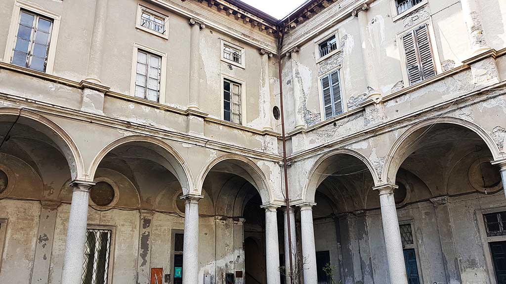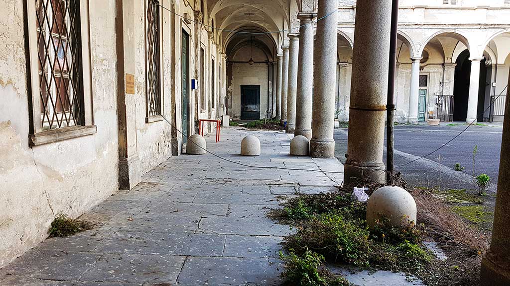 La campanella non suona da qualche generazione ma i due cortili interni – ormai non più raggiungibili – nel tempo hanno ospitato corsi di formazione, servizi pubblici e una delle tante versioni del dormitorio pubblico. C’era la circoscrizione, la sede dell’Autunno Musicale, associazioni che si sono alternate.