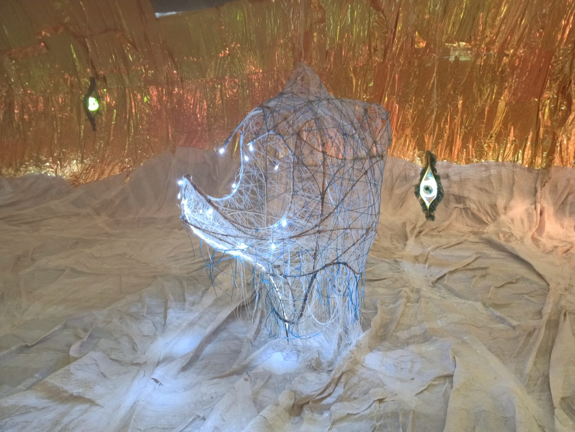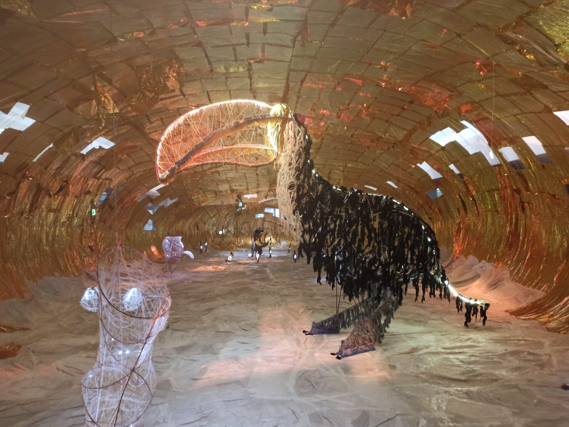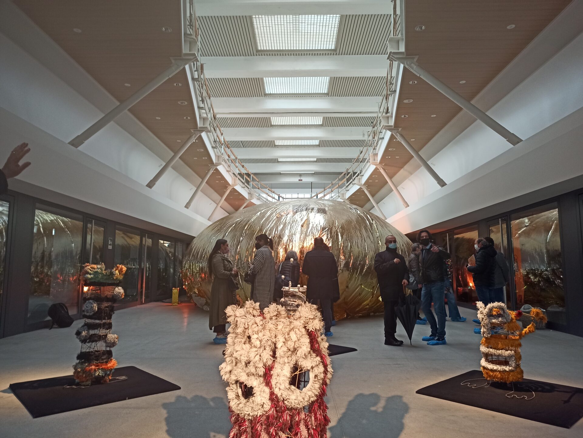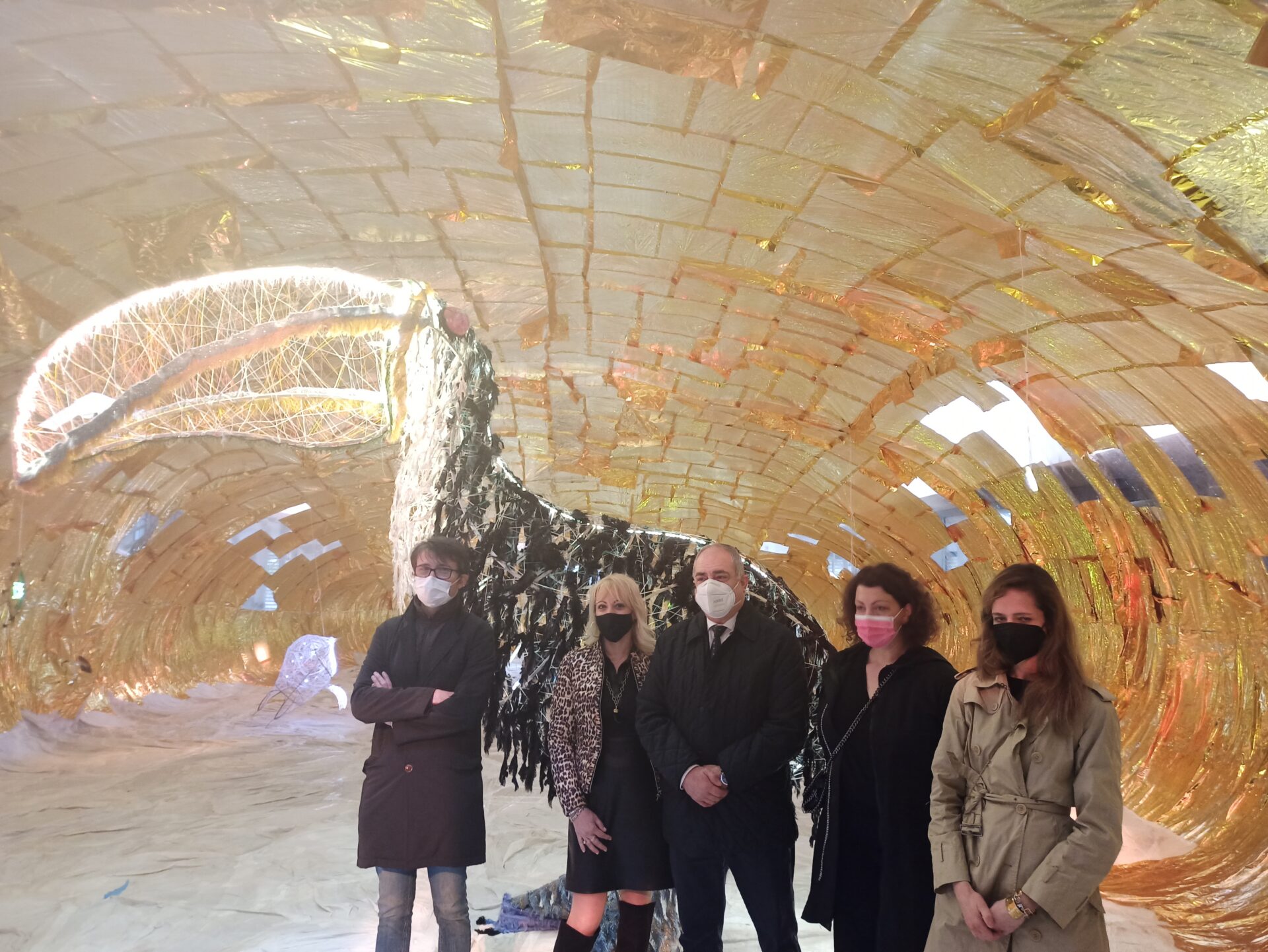 All’interno diverse installazioni e un enorme tucano con un’anima in metallo ricoperta da cimosse delle seterie Mantero e illuminata da luci a led collegate tramite un’App al battito cardiaco dell’artista che ne modifica il colore. “Sei esattamente dove dovresti essere”, questo è il titolo di questa straordinaria installazione, è il messaggio dell’artista che è nell’unico luogo in cui può stare, accanto alle sue opere. Ma è anche un messaggio che, lanciato in questo luogo bellissimo e dimenticato, deve essere un invito a riflettere su quello che può trovare spazio qui.