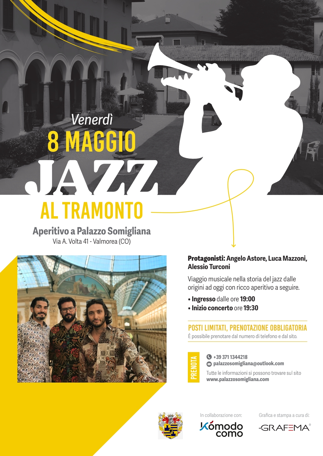 La prima data da segnare in agenda è quella dell’8 maggio quando – dalle 19.30 alle 21.30 – si esibiranno Angelo Astore, Luca Mazzoni e Alessio Turconi con la serata “Jazz al tramonto”. Location, come detto, Palazzo Somigliana in via Volta 41 a Valmorea.