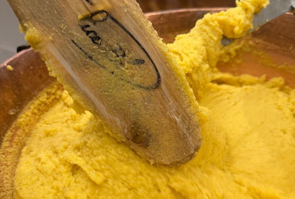 Il toc è il piatto simbolo della cucina bellagina e del Lago di Como. Una polenta ricca, lenta, preparata con pazienza, mescolata a lungo e arricchita con burro e formaggi del territorio, servita tradizionalmente in un paiolo posto al centro della tavola e consumata con le mani.