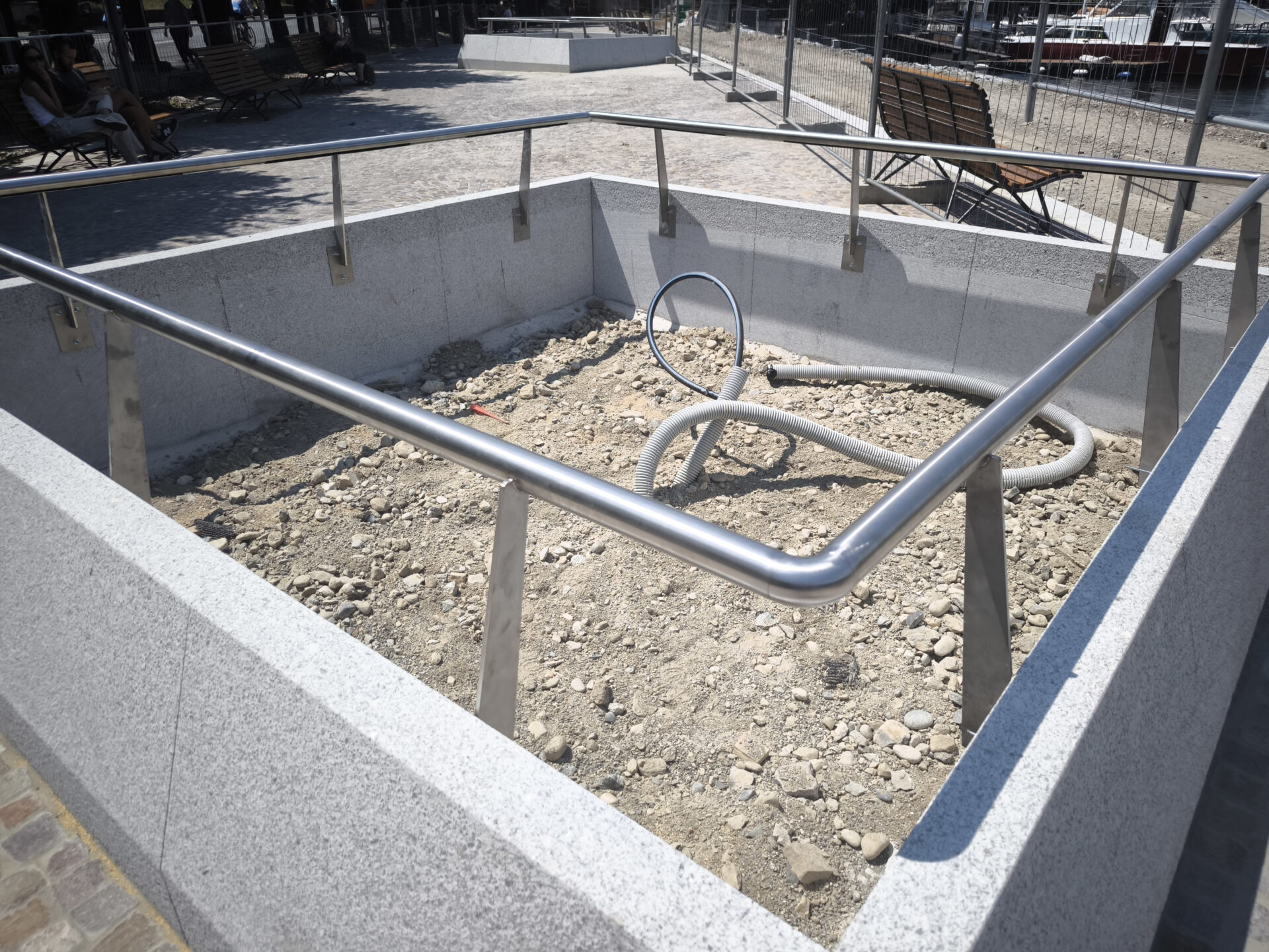 Ancora da riempire gli enormi vasi destinati al verde (non è periodo di piantumazioni, ovviamente).