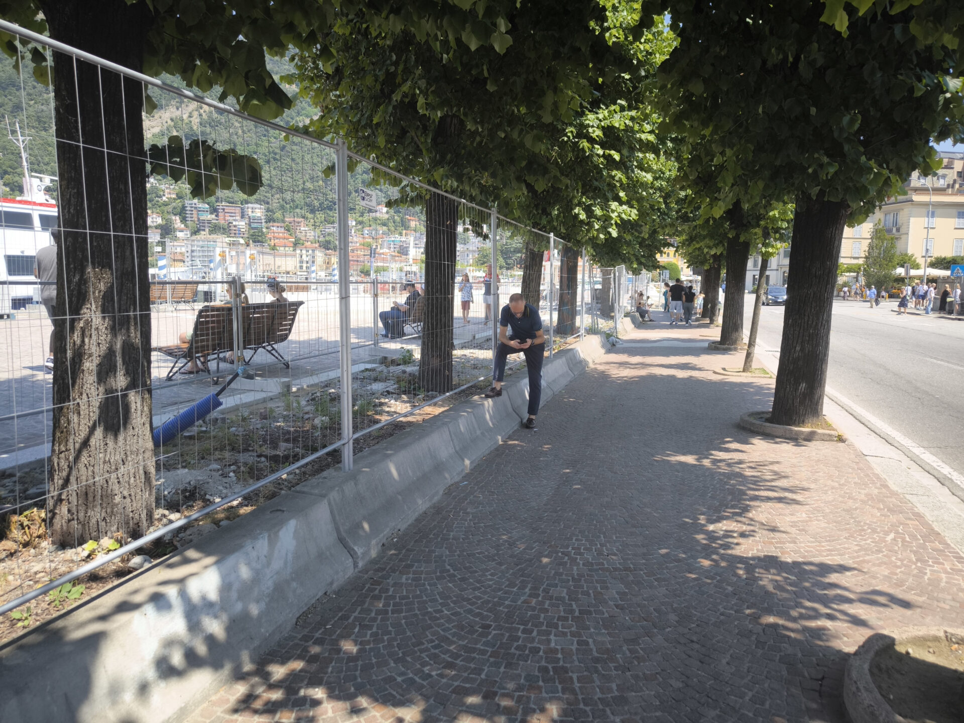 Pochi metri più avanti, subito dopo via Fratelli Cairoli ecco che si apre un nuovo pezzo di lungolago in versione gabbia, all’altezza del pontile 5 della Navigazione è possibile infatti attraversare un lungo corridoio con alcune panchine disponibili all’ombra dei platani.