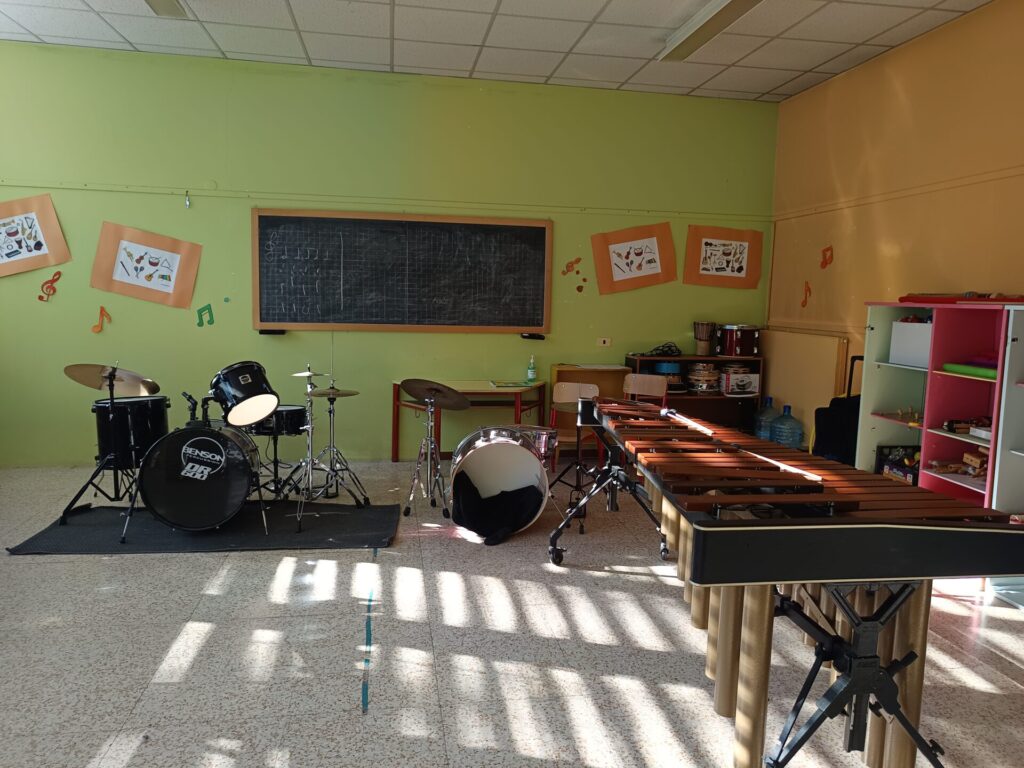 Come dicevo prima, abbiamo una ricca biblioteca con volumi di narrativa per tutte le fasce di età per il nostro progetto di educazione alla lettura, libri di ricerca, divanetti, tavoli e un piccolo museo. Quest’aula, funge anche da aula computer, grazie a dieci pc portatili riposti in uno speciale carrello quando inutilizzati. Ed essendo una primaria a curvatura musicale, qui si tengono anche le lezioni di violino. Poi abbiamo un’aula con due pianoforti e una pianola e l’aula percussioni e abbiamo anche un coro. Inoltre abbiamo un’aula di arte con arredi acquistati grazie al Pnrr, dove si svolgono anche le lezioni di clarinetto, e una di scienze, anch’essa totalmente allestita grazie ai fondi Pnrr, con due microscopi digitali che possono proiettare le immagini sulla lavagna Lim.