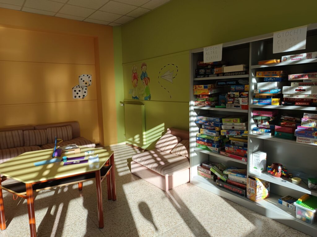 Sono tre aule polifunzionali che vengono usate da tutti i docenti quando, durante le lezioni, servono spazi ulteriori. Qui ad esempio vengono accolti i bambini con certificazione Dsa che hanno bisogno, durante le verifiche, di una lettura ad alta voce degli esercizi, impossibile da fare in classe oppure chi non frequenta l’ora di Religione. Ma hanno soprattutto divani, cuscini e giochi, ovvero il cosiddetto ‘spazio morbido’, perché fungono da aule di decompressione per tutti quei bambini con disturbi speciali che, accompagnati dall’insegnante di sostegno, hanno bisogno di momenti di tranquillità fuori dalla loro classe, oltre che di un’aula in cui svolgere alcune attività mirate con supporti specifici. E sono anche molto importanti per tutti gli altri alunni, perché capita che talvolta qualcuno attraversi un momento difficile e abbia bisogno di un momento protetto per ritrovare serenità, e di certo non può essere un corridoio. Ricordiamoci che sono bambini piccoli, hanno tutti bisogno di essere accompagnati.