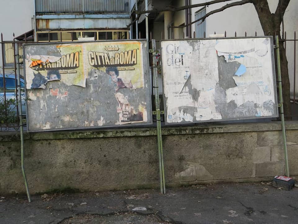 Emblematico è un cartellone pubblicitario, lì chissà da quanto. Tutto sgangherato: non è un buon segno.
