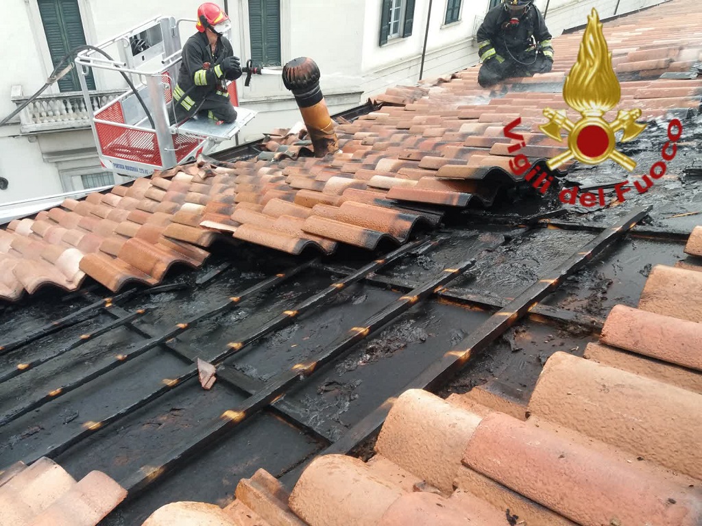 Fumo e fiamme sul tetto di una casa in via Manzoni, zona Sant’Agostino, a Como. Nelle immagini l’intervento in diretta dei Vigili del Fuoco.