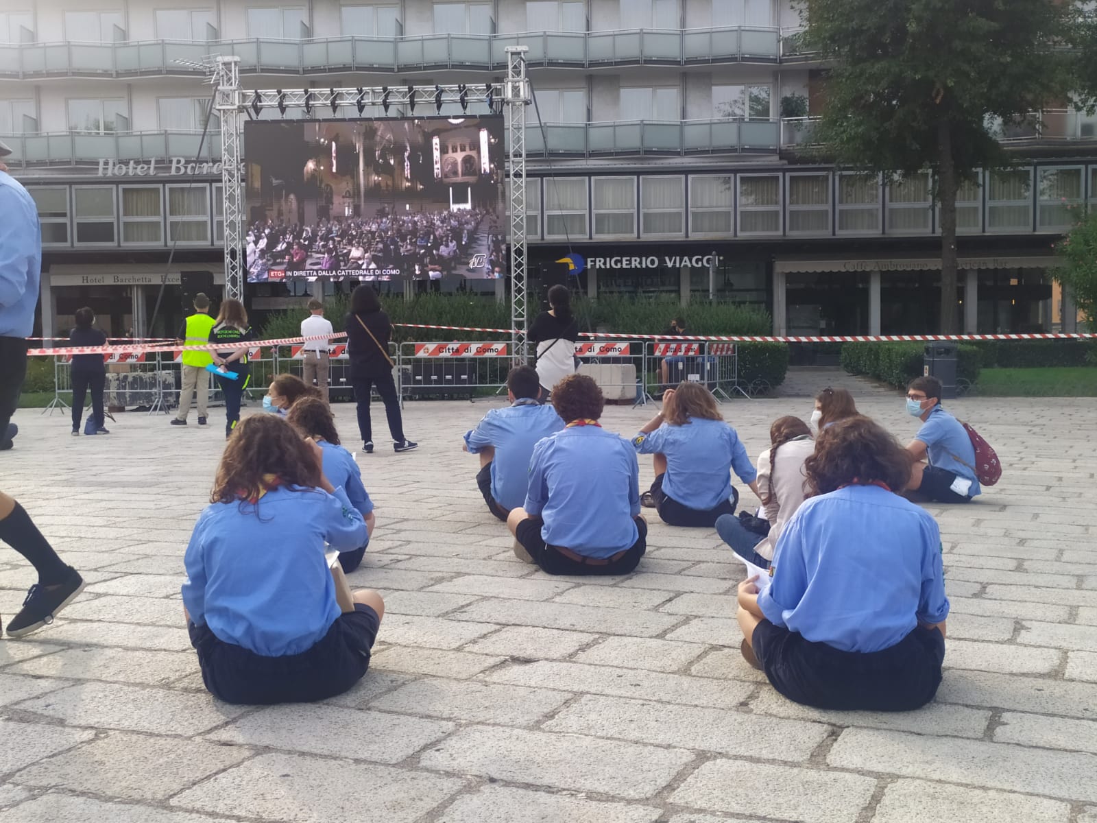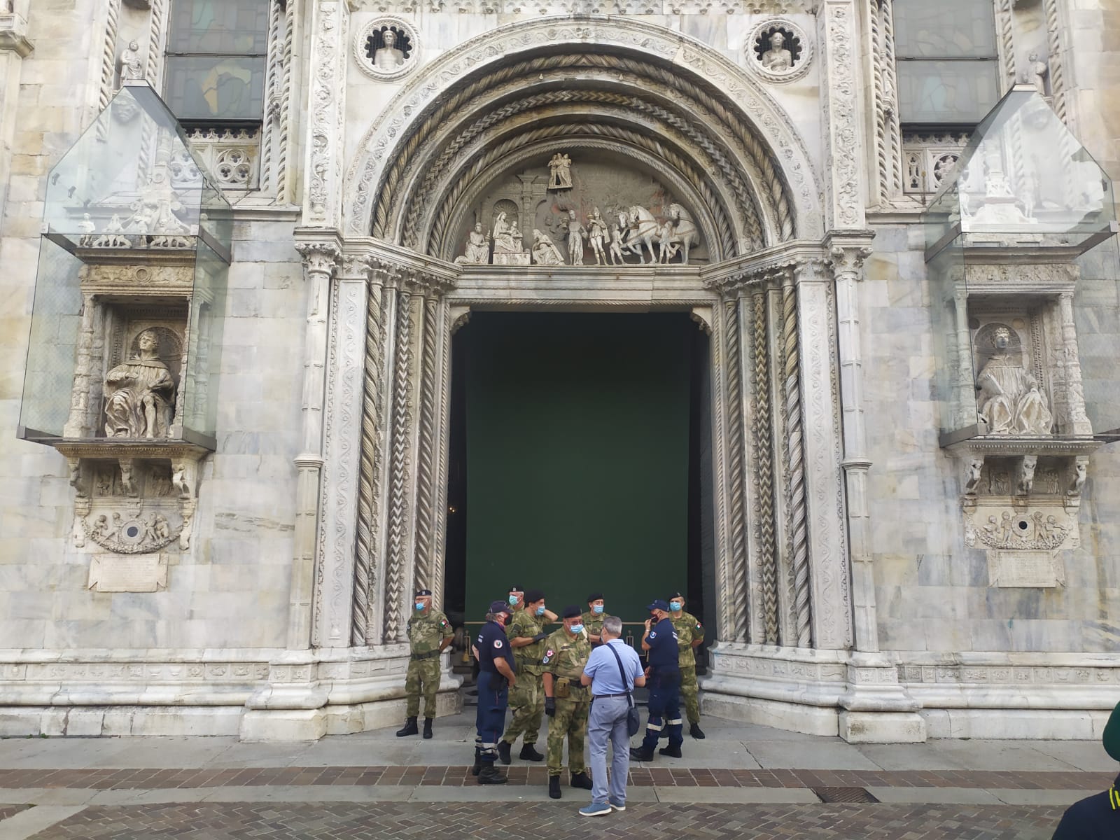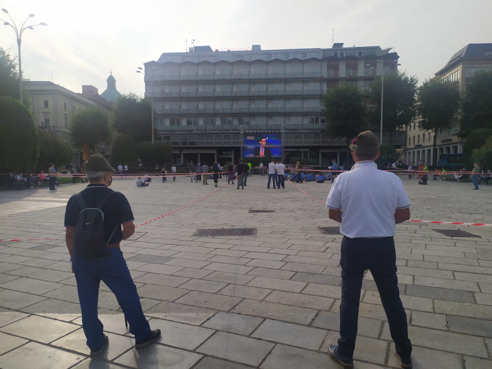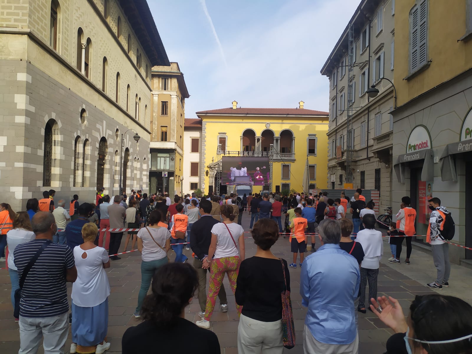 Il centro di Como come una grande chiesa a cielo aperto per il commiato della città da don Roberto Malgesini. Dopo i funerali di ieri a Regoledo, e mentre in Cattedrale si svolge la messa di suffragio (nel video sotto) con posti limitati per le limitazioni anti Covid, nelle piazze attorno (Grimoldi, Verdi e Cavour) molti fedeli hanno seguito la celebrazione grazie ai maxischermi allestiti dalla Diocesi.