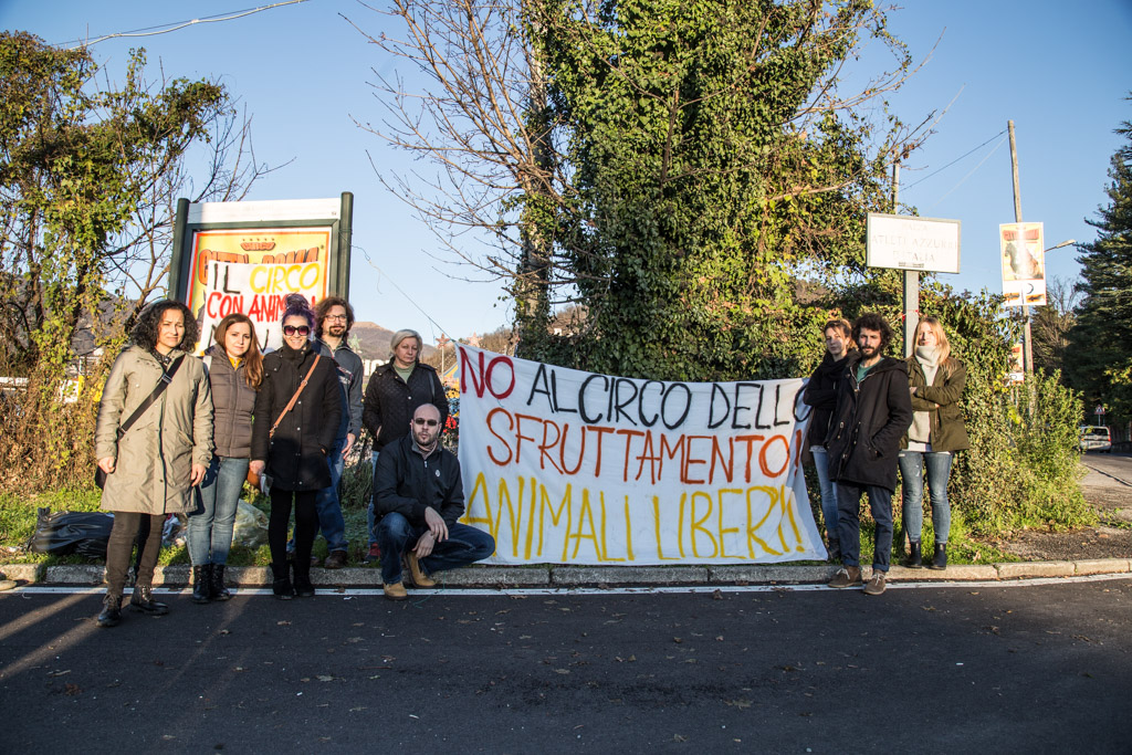 Obiettivo del raduno era contestare l’utilizzo degli animali in spettacoli circensi tenuti, secondo i manifestanti, in condizioni non adatte.