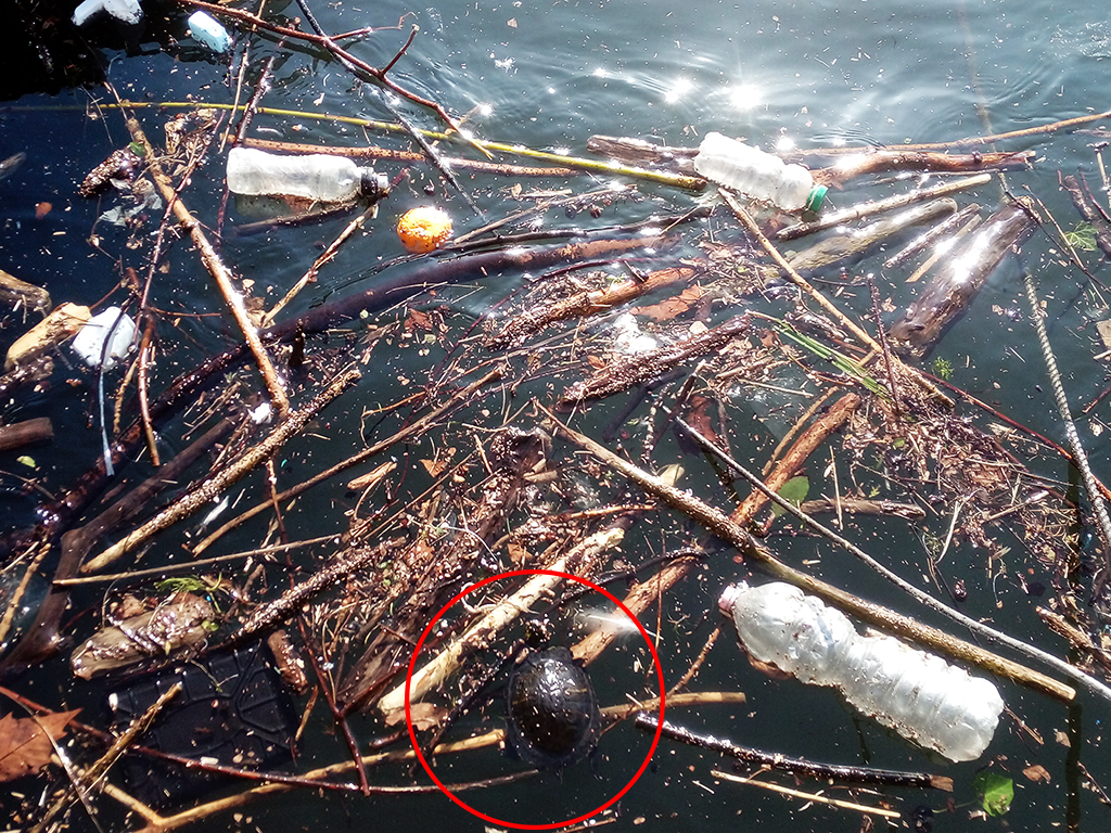 Nuota lenta tra plastica e polistirolo. Se confusa è difficile dirlo (ma così pare), certo si confonde in mezzo ai rifiuti, tanto che in un primo momento ci era parsa un caschetto o qualcosa di simile. Il concetto di mimetizzazione massimamente rappresentato in mezzo ai segni della “civiltà” umana da una tartaruga. Sotto il video.