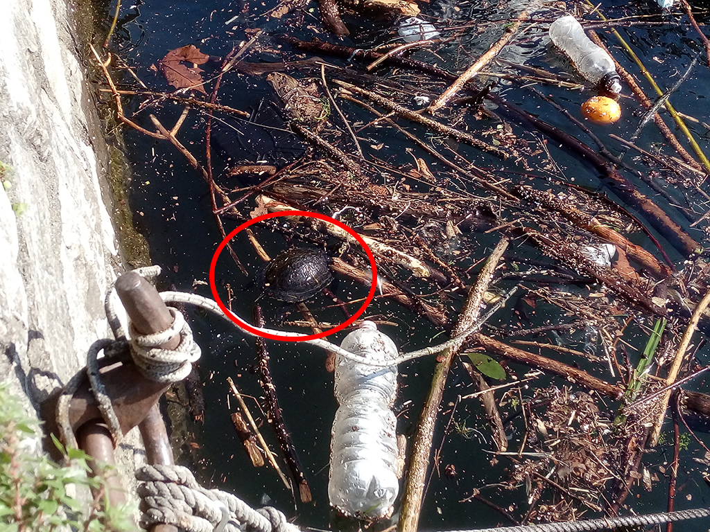 Il nido sul motoscafo lo fa tutti gli anni! O è una foto dell’anno scorso?! Il lago è purtroppo pieno di tartarughe che furono tartarughine innoque abbandonate ma che destabilizzano gli equilibri della fauna lacustre. Purtroppo sono buffe, paiono simpatiche ma… Sarebbe meglio non vederne. I rifiuti invece non sono nemmeno minimamente buffi o simpatici, maledetto chi sporca e chi non pulisce.
