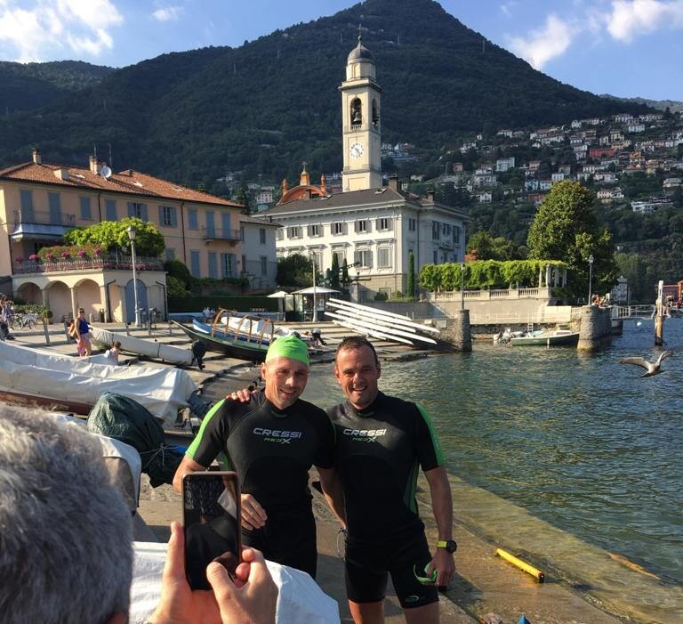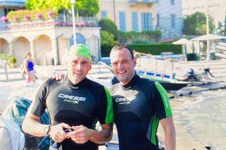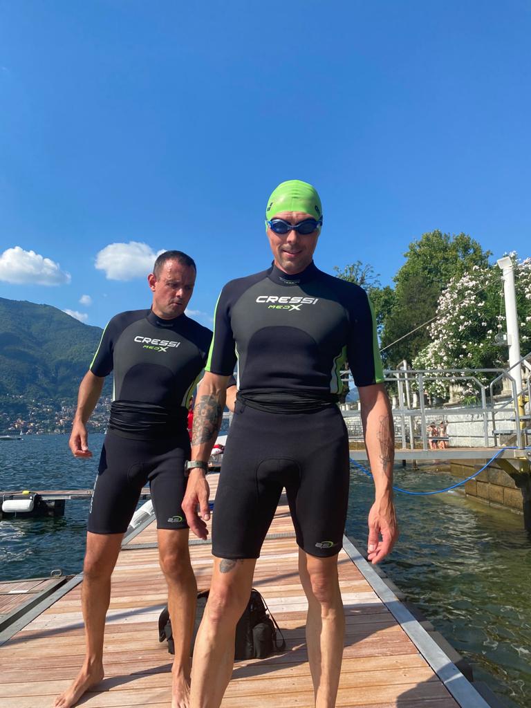 Presenti anche i sindaci di Cernobbio, Matteo Monti, e di Olgiate, Simone Moretti, oltre a tanti amici de l’Alveare onlus e curiosi che si sono recati in riva a Cernobbio per l’arrivo dei due amici insieme a Raffaele e Paolo.