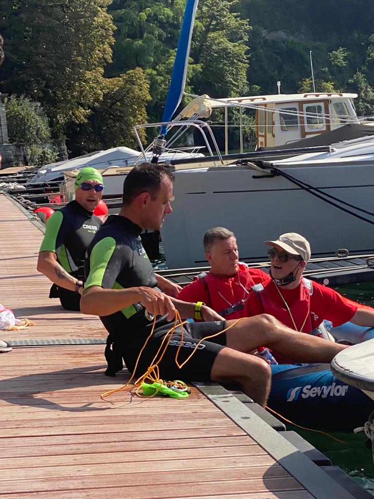“Nonostante il lago bello incavolato, tra onde e corrente abbiamo portato a termine una sfida sociale e sportiva”.