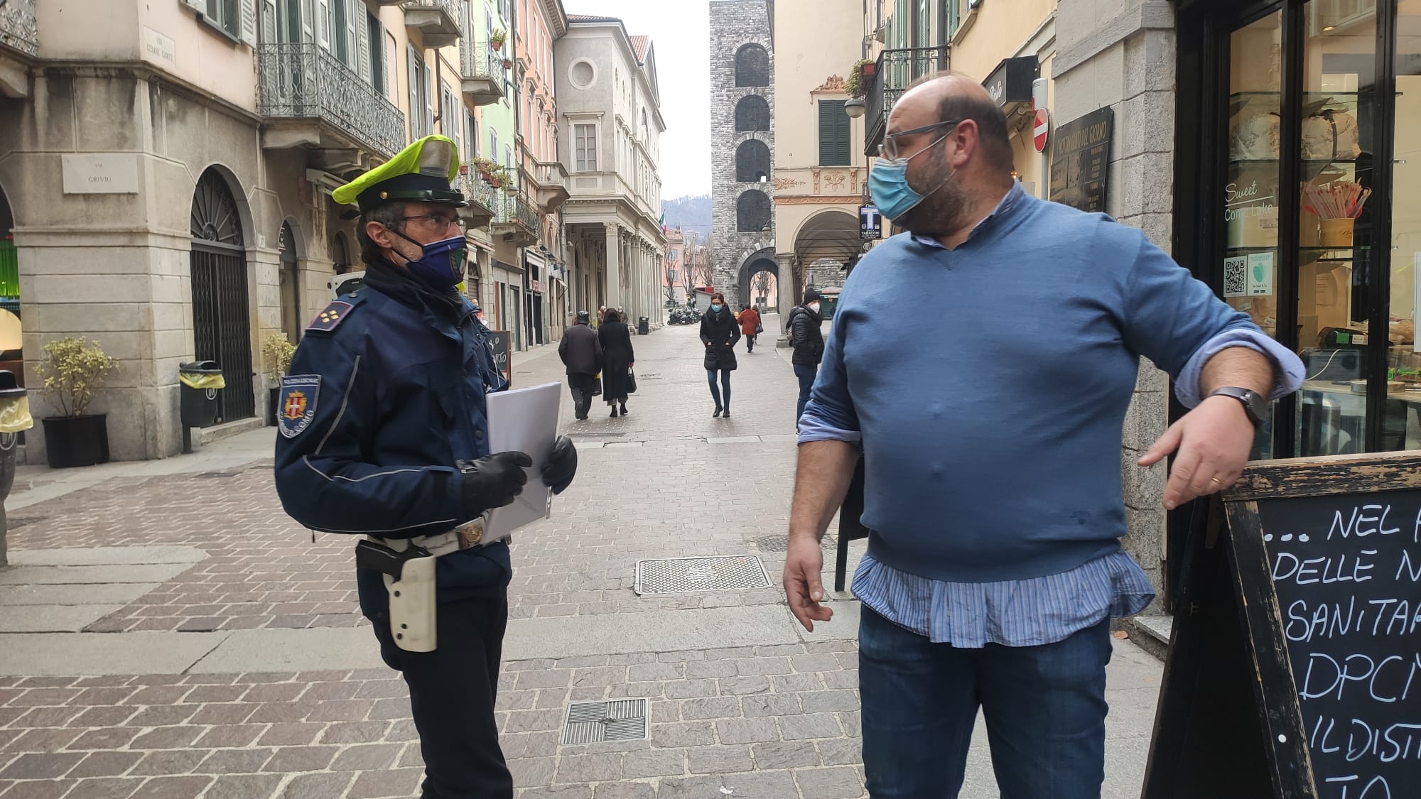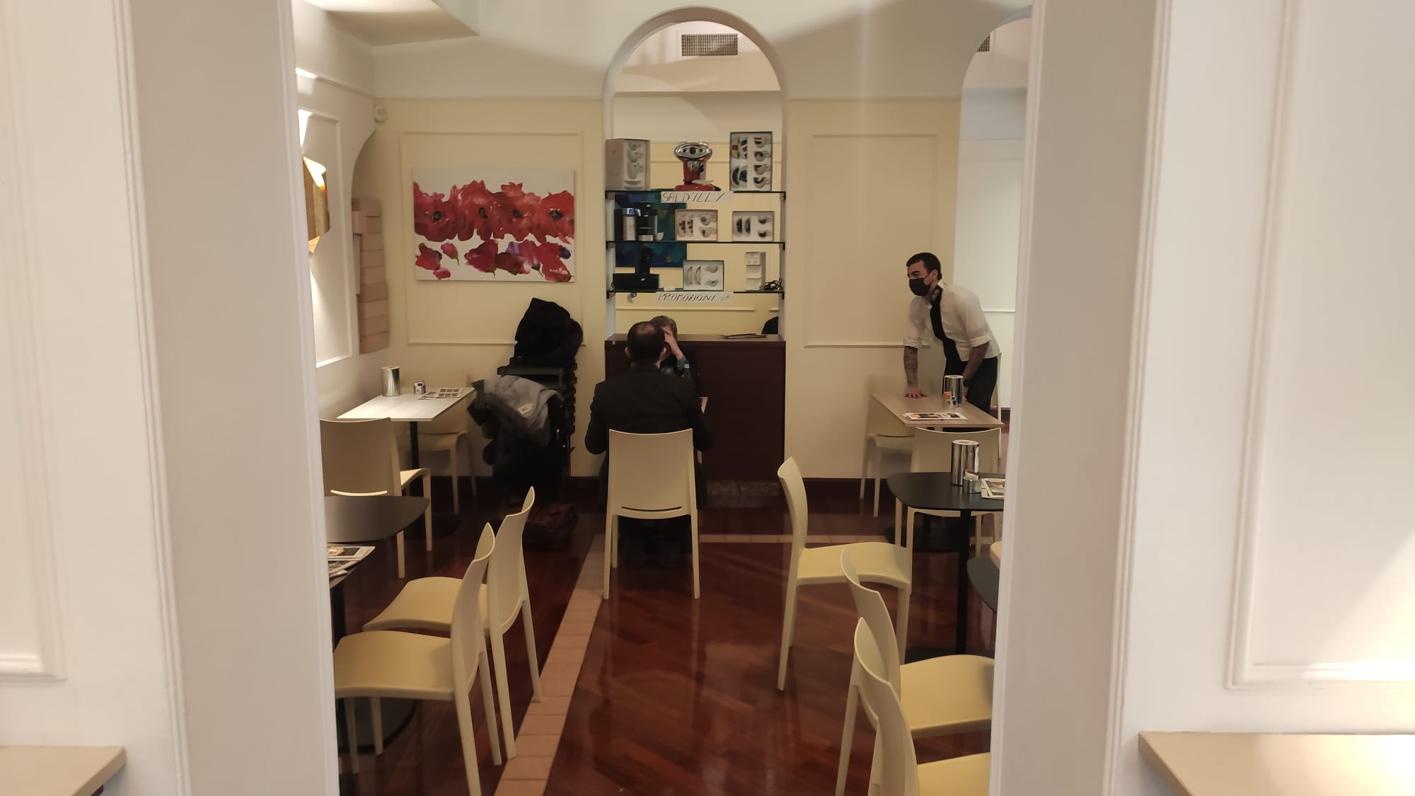 E’ Alberto Vetrano, dello storico Arte Dolce Lyceum di Como. Questa mattina porte aperte e clienti serviti ai tavoli dai camerieri, nonostante ci troviamo ancora in zona arancione dove sono permessi soltanto asporto e domicilio.