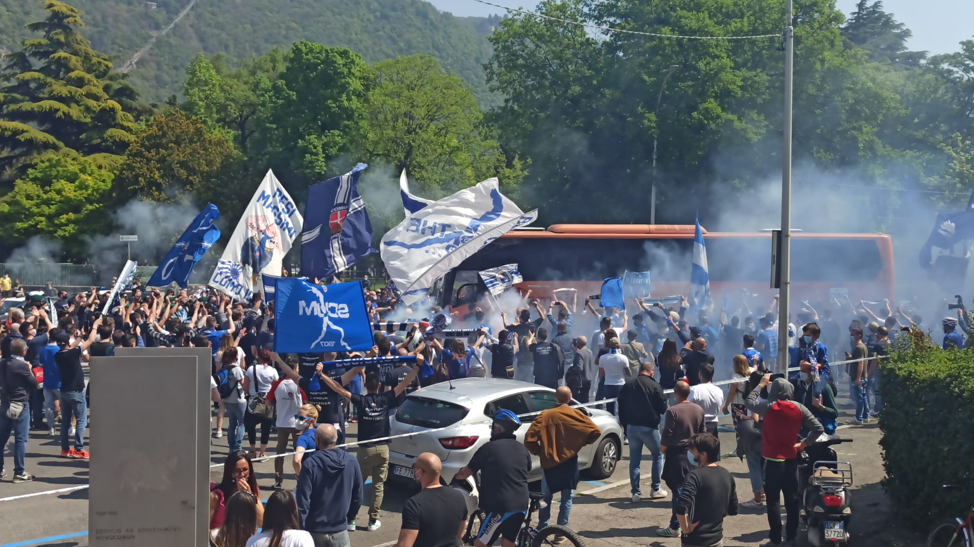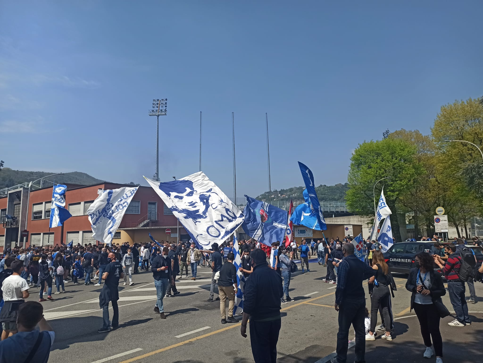 Qui l’arrivo, pochi minuti fa, del pullman azzurro circondato dall’amore dei supporters.