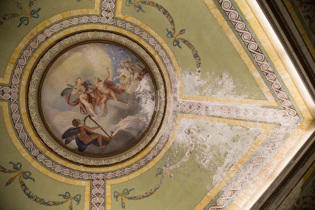 E la muffa dietro la porta di cui sopra? Nessuna allegoria: c’è e si trova nelle sale chiuse al pubblico del primo piano dove tra parquet che paiono composizioni dadaiste, grovigli di cavi e crepe monitorate da sistemi di sicurezza digitali.