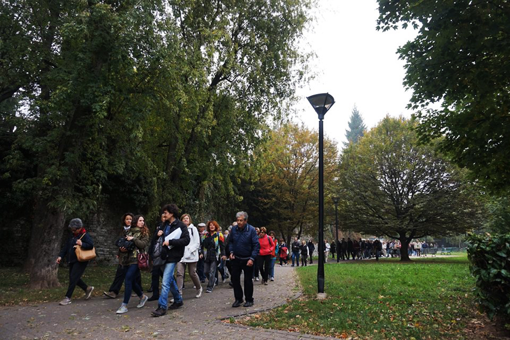 E neanche le Passeggiate Creative hanno bisogno di grandi presentazioni, a dirla tutta, perché riescono sempre a fare il tutto esaurito con una media di 150 persone circa ad appuntamento, a cui spesso se ne aggiungono altre strada facendo “ma solo perché, dopo le prime volte in cui si sono presentate 500 persone, abbiamo dovuto mettere un numero chiuso, se no sarebbero molte di più. Finora abbiamo coinvolto circa 7500/8000 persone in tutto”, racconta Pietro.