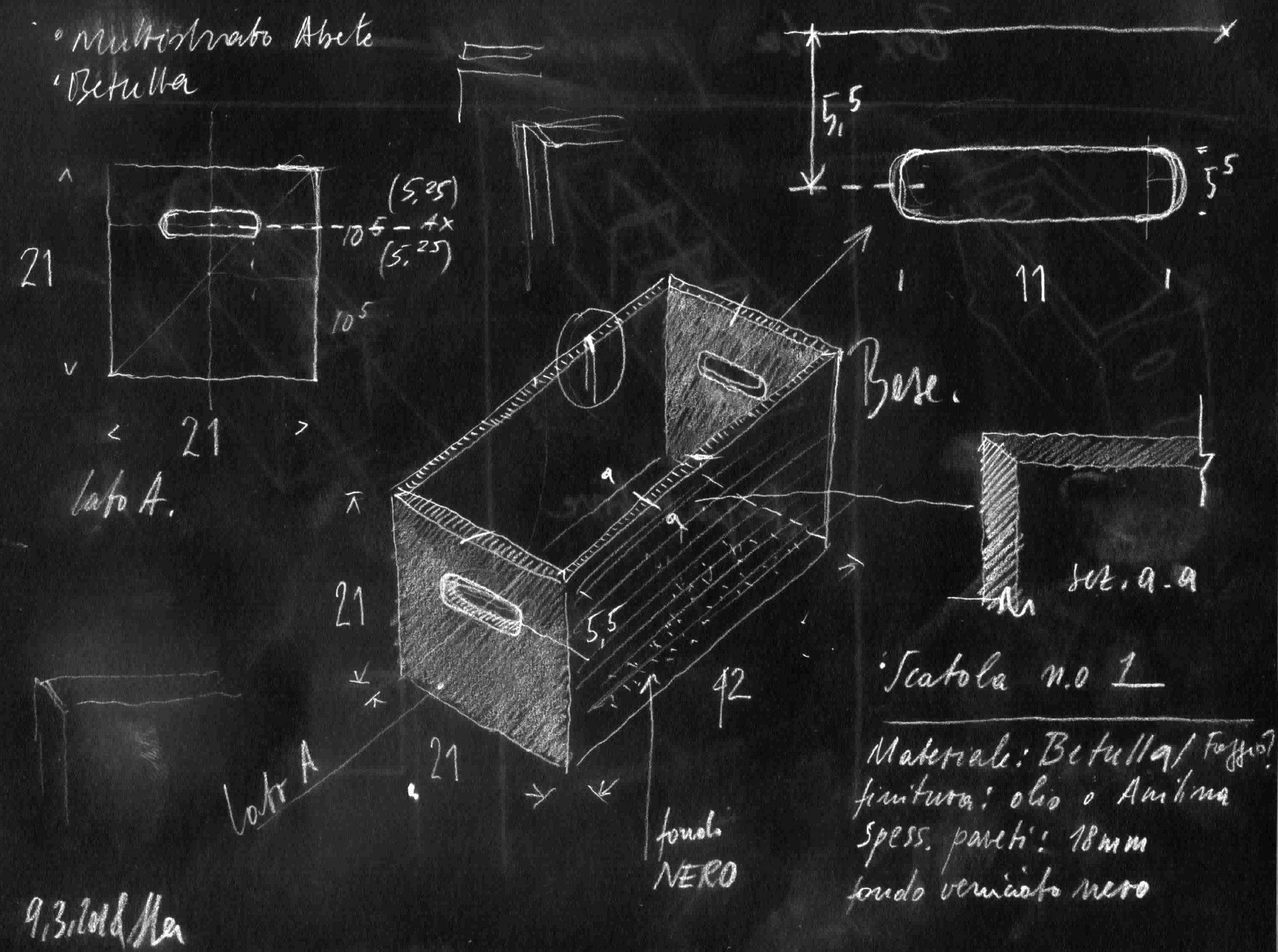 Lo spazio espositivo diventa una scatola nera che si anima grazie alla luce e che vuole condurre i visitatori a scoprire un percorso di progetto che non è solo oggetto ma che vede in quest’ultimo la parte finale di un intero itinerario creativo.