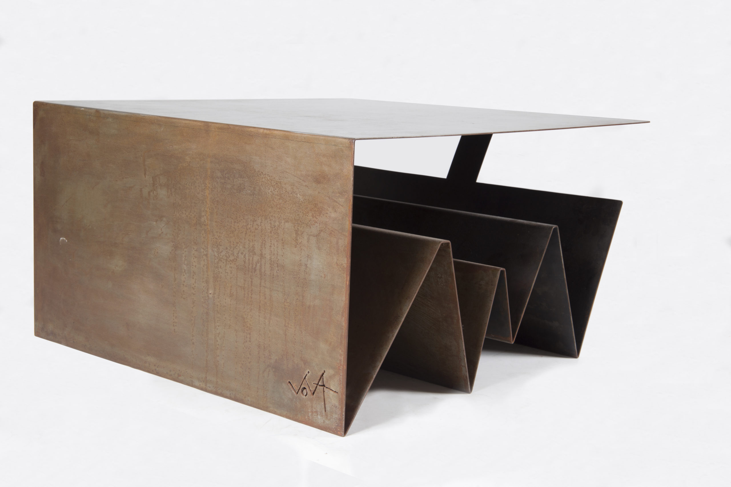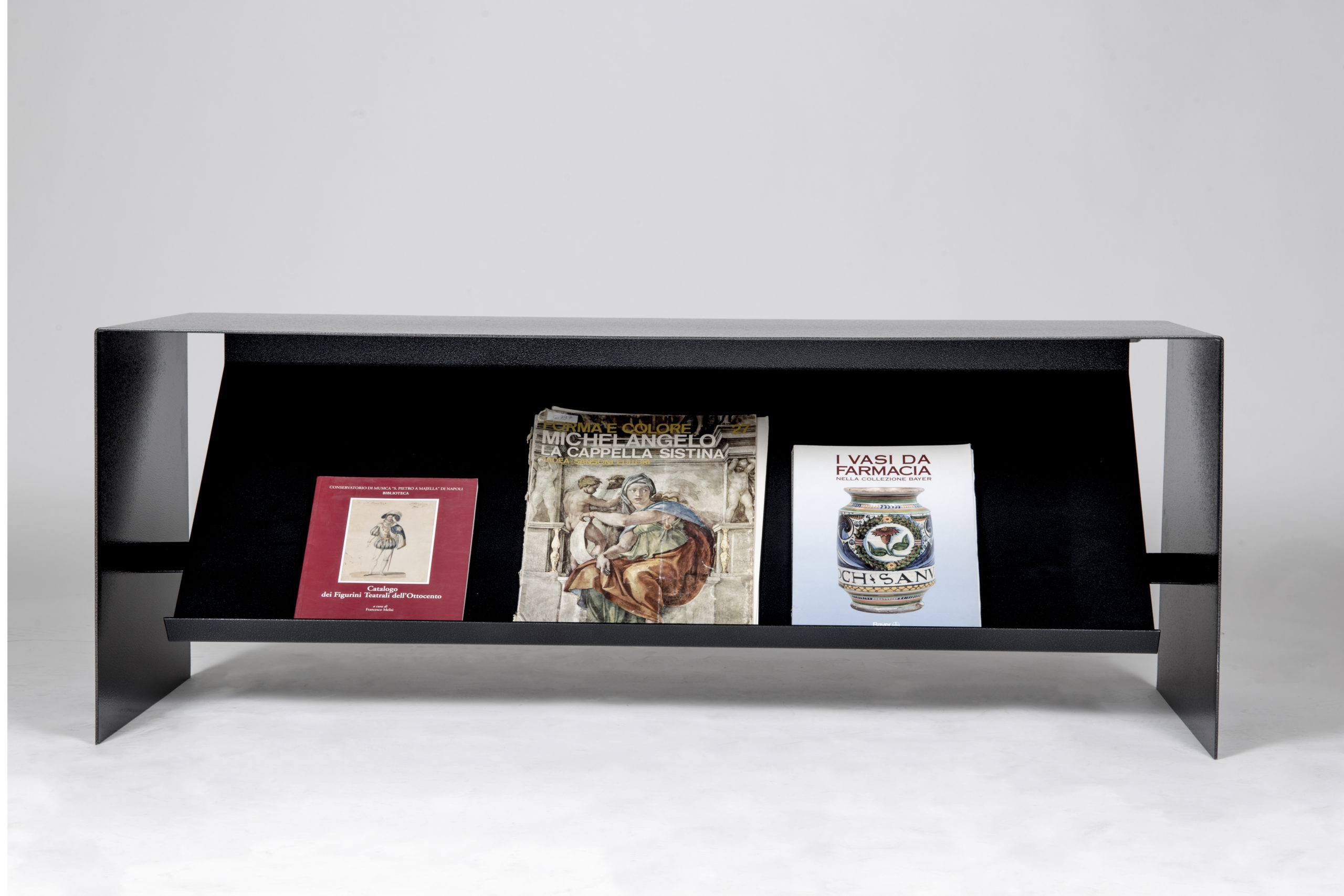 Da queste collaborazioni nascono Warped Table di Gabriele Bianchi, Iron Paper di Vladimir Mazzoletti, L/V Shelf di Luca Valsecchi e la Scarpetta di Giovanni Taddei.