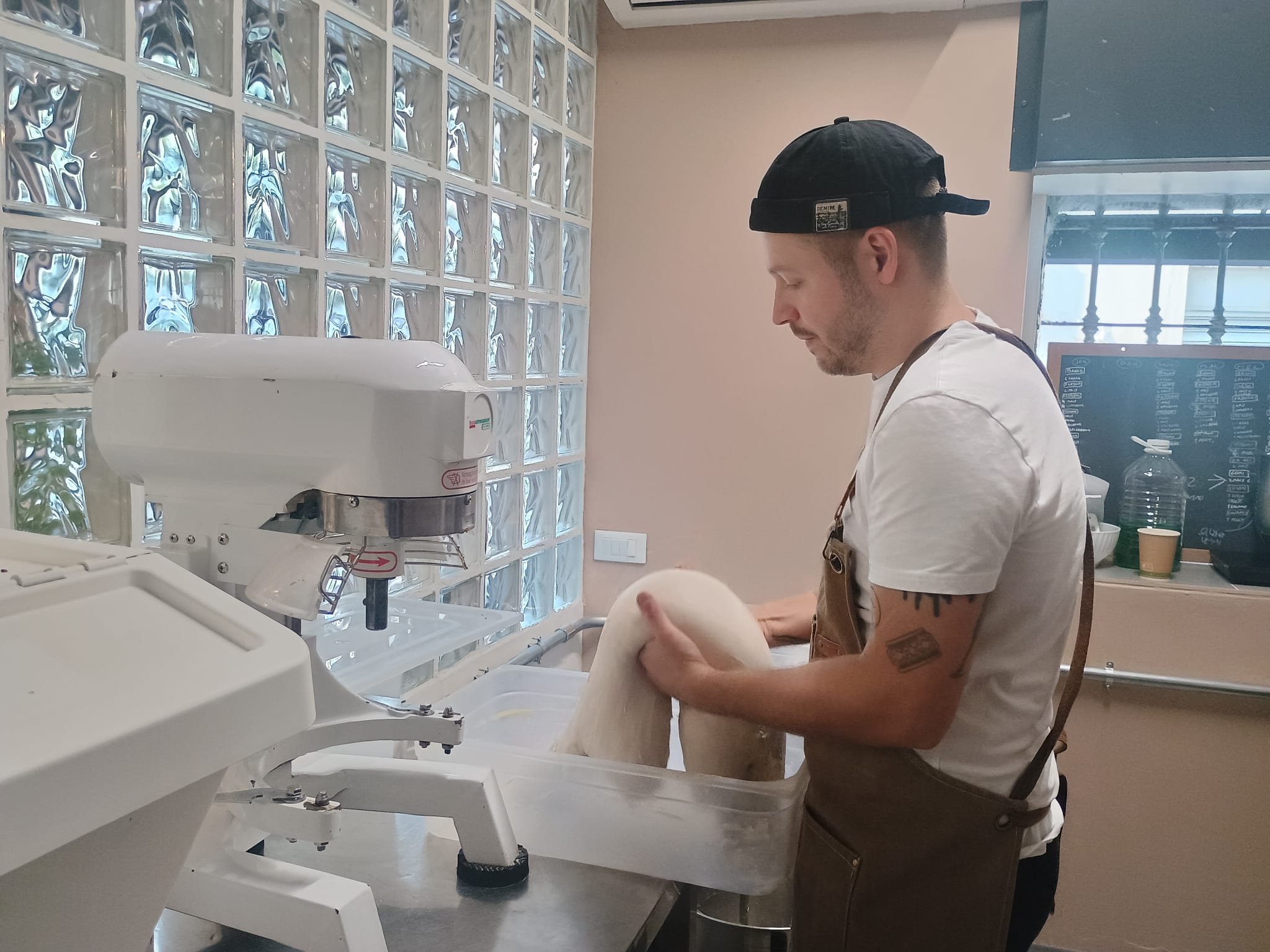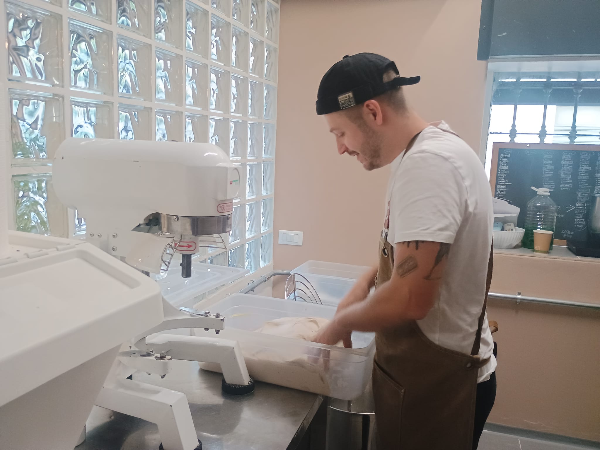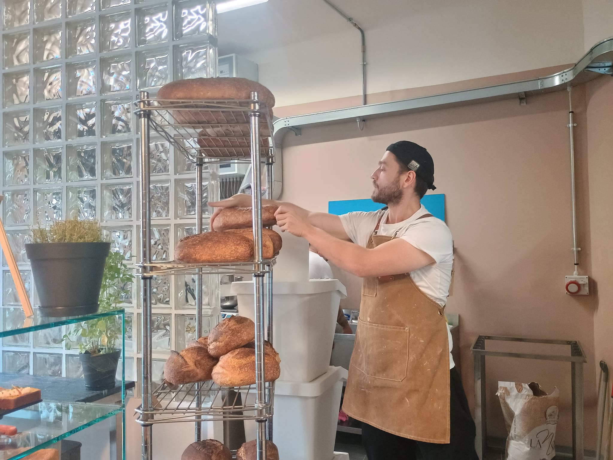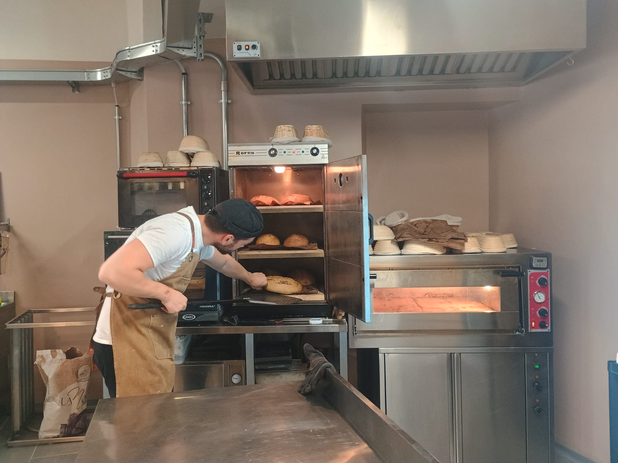 Tutto è artigianale. Ogni impasto riposa tra le 24 e le 48 ore, nessun macchinario automatico, nessuna spezzatrice. “Le pagnotte sono formate una a una, seguite nel loro tempo di riposo. È un lavoro di sensibilità, non di numeri”. Anche il laboratorio è a vista: “Fare il panettiere è un lavoro faticoso, ma bellissimo. Mostrare come si lavora, accogliere la gente dentro il nostro mondo, dopo anni passati in cucine chiuse, è una sensazione stupenda”.