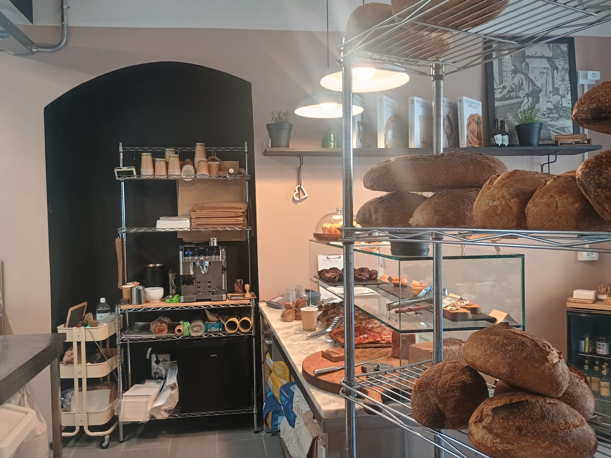 Il negozio è nuovo di zecca, ma la storia di Arso comincia un po’ prima, quasi per caso, in casa, come una home bakery. “All’inizio servivo solo qualche ristorante, qualche amico – ci racconta Walter – Poi i clienti hanno iniziato a riconoscere il pane nel cestino e a chiedere chi lo producesse. Così abbiamo deciso di fare il grande passo e aprire il nostro forno”.