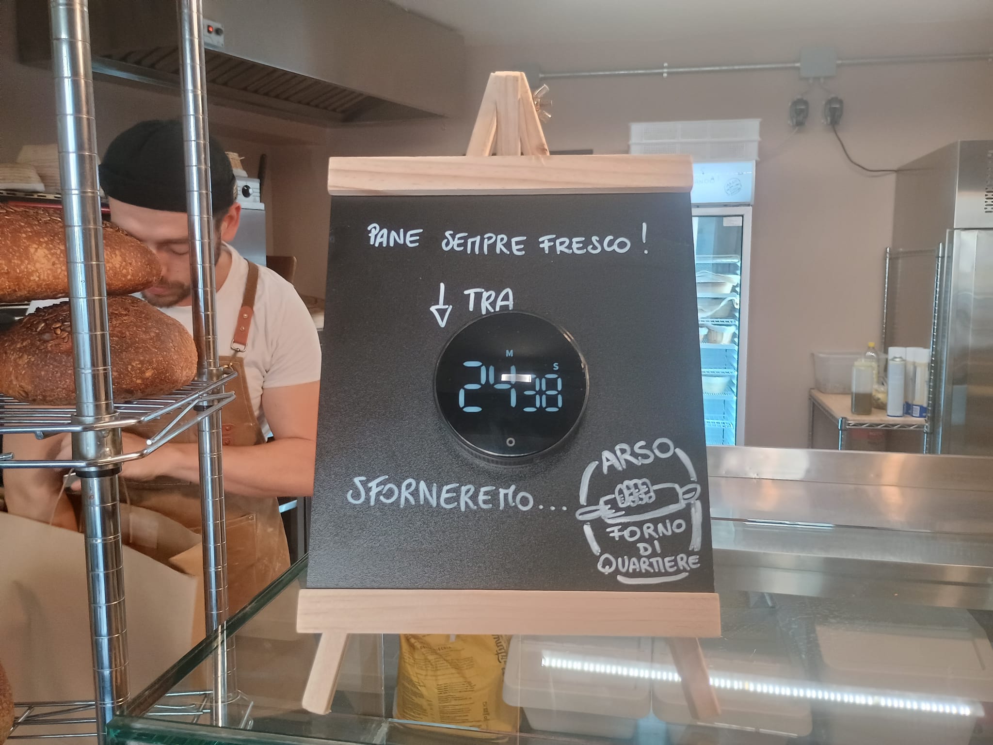 Da Arso si sforna tutto il giorno: piccole quantità, ma sempre fresche. “La maggior parte dei panifici lavora di notte. Noi invece facciamo tante piccole infornate durante la giornata, così chi entra trova sempre qualcosa di caldo e profumato”. Sul bancone c’è persino un timer che indica tra quanto tempo uscirà il prossimo pane: “È un modo per coinvolgere i clienti, farli sentire parte del processo”.