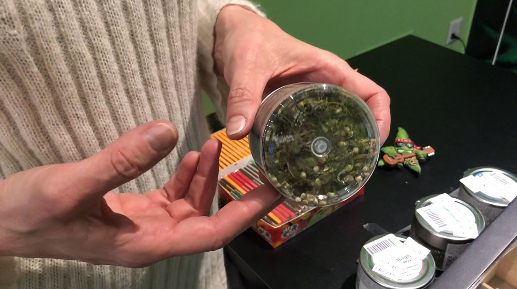 Per concludere Tiziana ci mostra il prodotto forse più interessante, a seconda dei gusti, del negozio: l’erba con cui preparare un decotto o, come da secoli si è sempre fatto, da fumare. Anche in questo caso le tipologie di erba nei vasetti sono diverse a seconda della trinciatura (cioè la lavorazione delle foglie e del fusto della pianta) e della percentuale di CBD presente. Unico consiglio che viene dato: aggiungere nel decotto una sostanza zuccherina, meglio se miele, per sciogliere i Cannabinoidi e permettere quindi il rilascio nella bevanda.