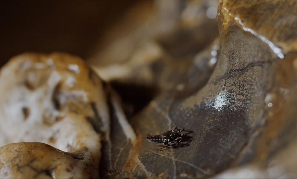Il mio viaggio alla scoperta della BIODIVERSITA comincia qui, dal luogo più buio e inaspettato. Spesso percepiamo l’oscurità come ASSENZA ma se illuminata può essere lo scenario di grandi scoperte. Questo è il luogo di incontro fra Madre Terra e l’acqua, che qui si rivela come portatrice di vita. Vita che assume forme più discrete e a volte bizzarre. Dipingendo con un fascio di luce possiamo ammirare le forme scolpite dall’incedere dell’acqua. Non ci sono stelle nella notte eterna dell’ambiente ipogeo. Fuori invece la volte celeste lascia il passo ogni giorno ad una nuova alba.