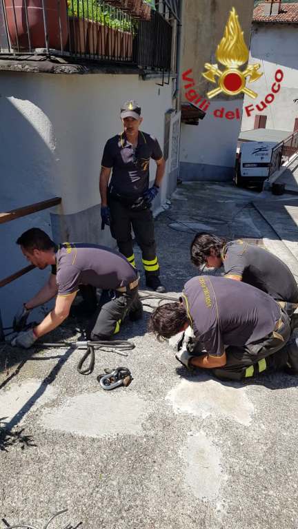 Sono intervenuti i Vigili del Fuoco di Como che, non senza fatica, sono riusciti a liberarlo.