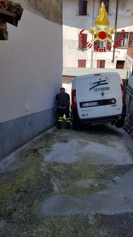 Curioso intervento questa mattina in via Colonna a Cernobbio. Per ragioni ancora non chiarissime un furgoncino si è letteralmente incastrato all’angolo della strada.