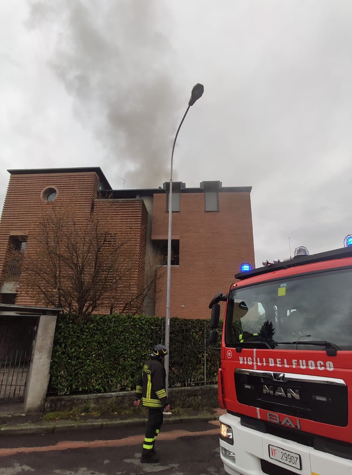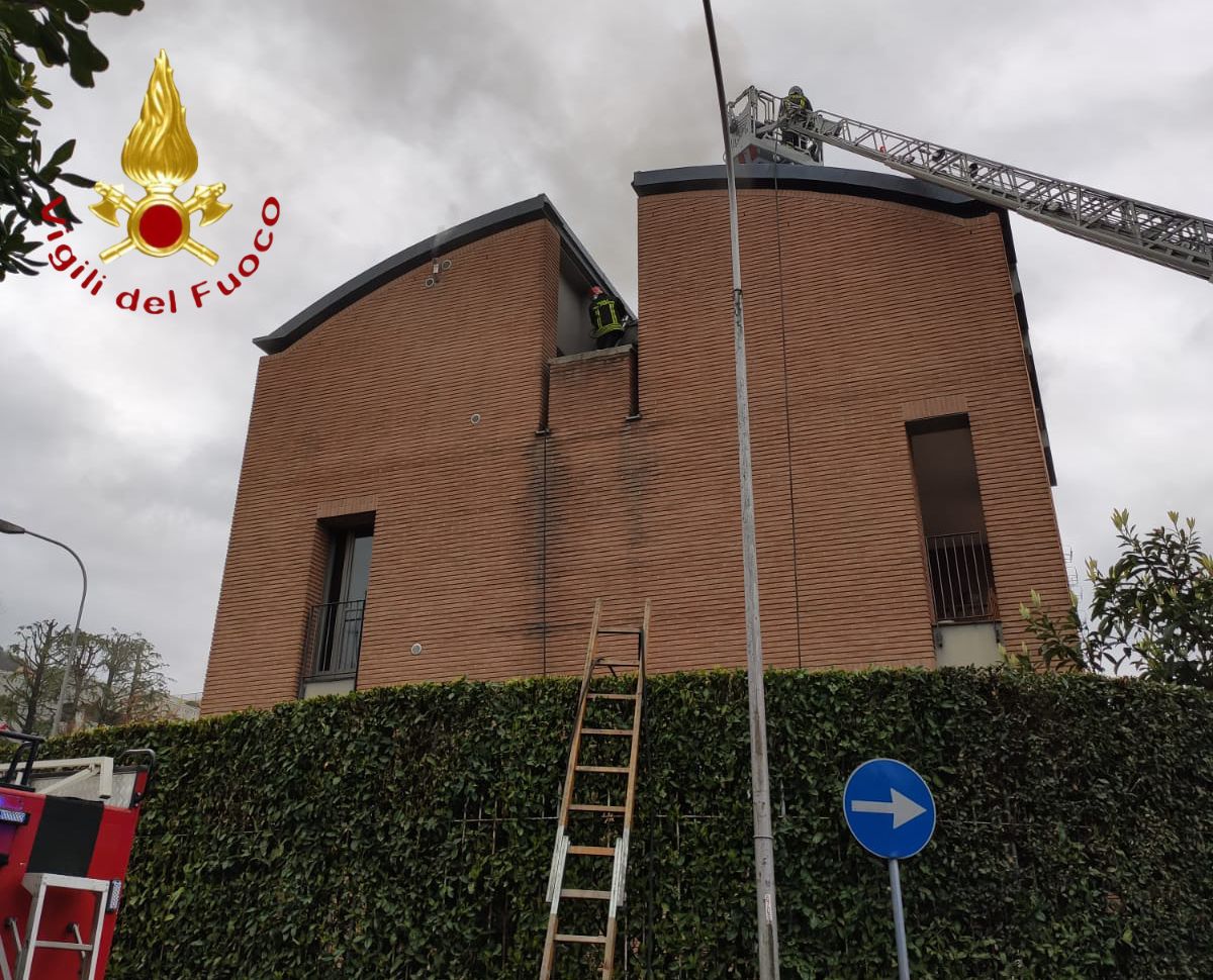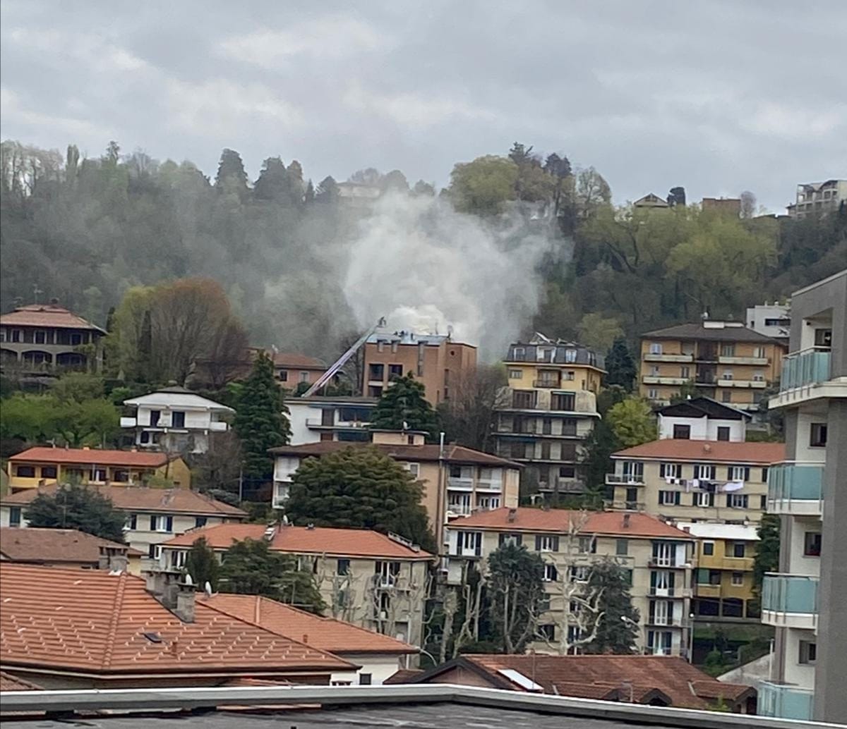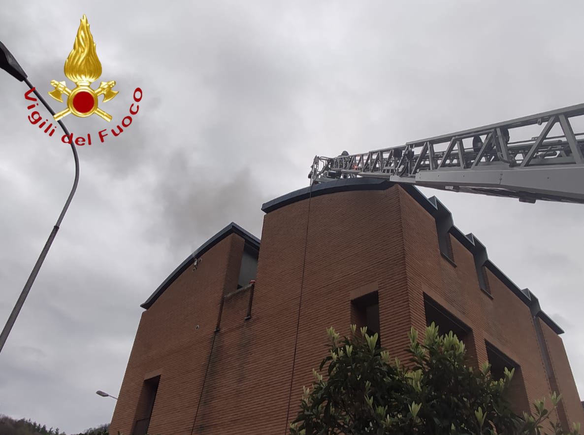 Per cause che saranno chiarite un tetto ha preso fuoco, fumo ben visibile in tutta la città data anche la posizione collinare della strada.