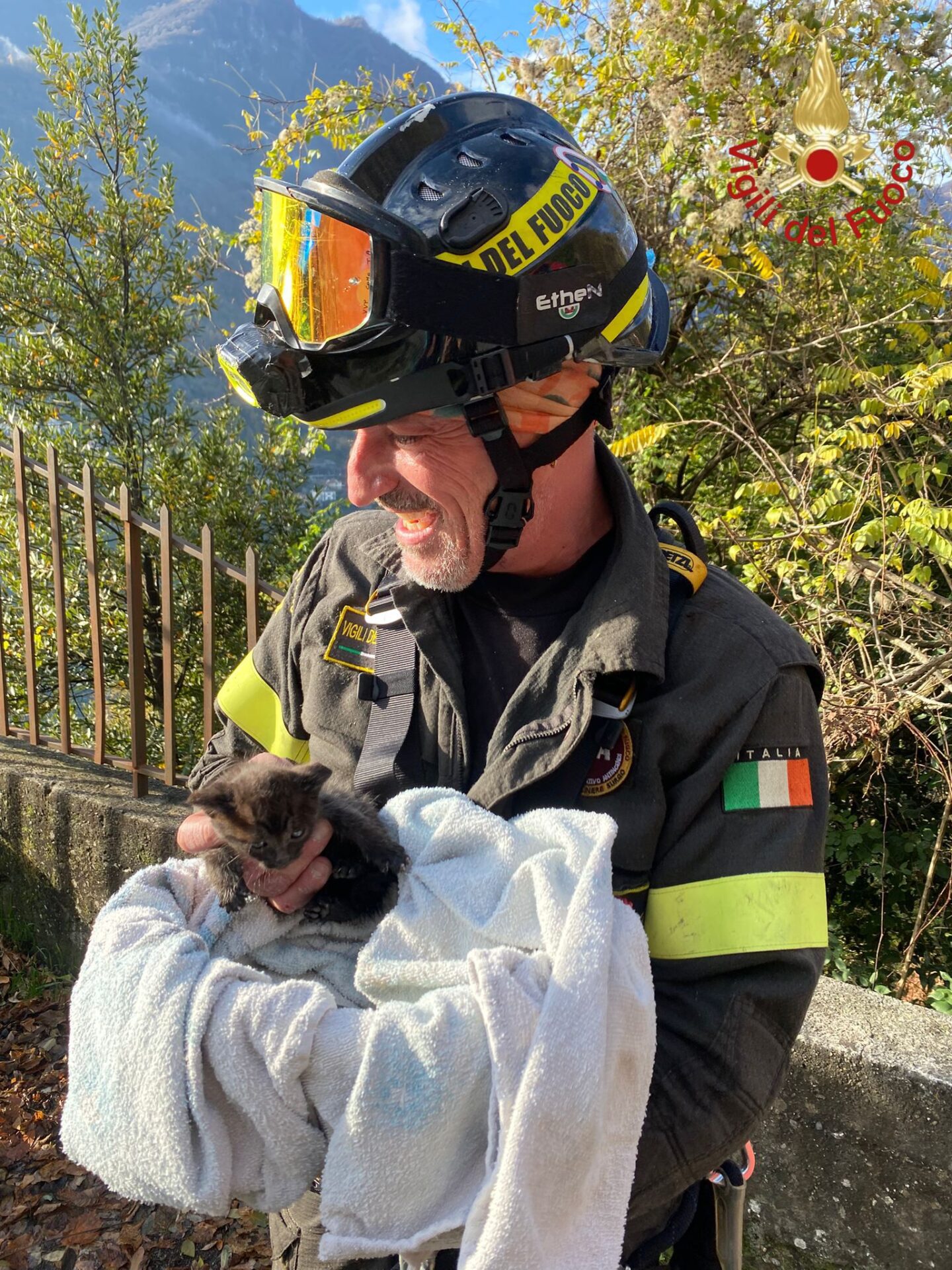 Intervento dei vigili del fuoco poco dopo le 13 oggi a Nesso, frazione Careno, per soccorrere un gattino che era precipitato per 20 20 metri in una valletta. I miagolii hanno attirato i passanti che hanno chiamato il Soccorso Alpino Fluviale dei pompieri.