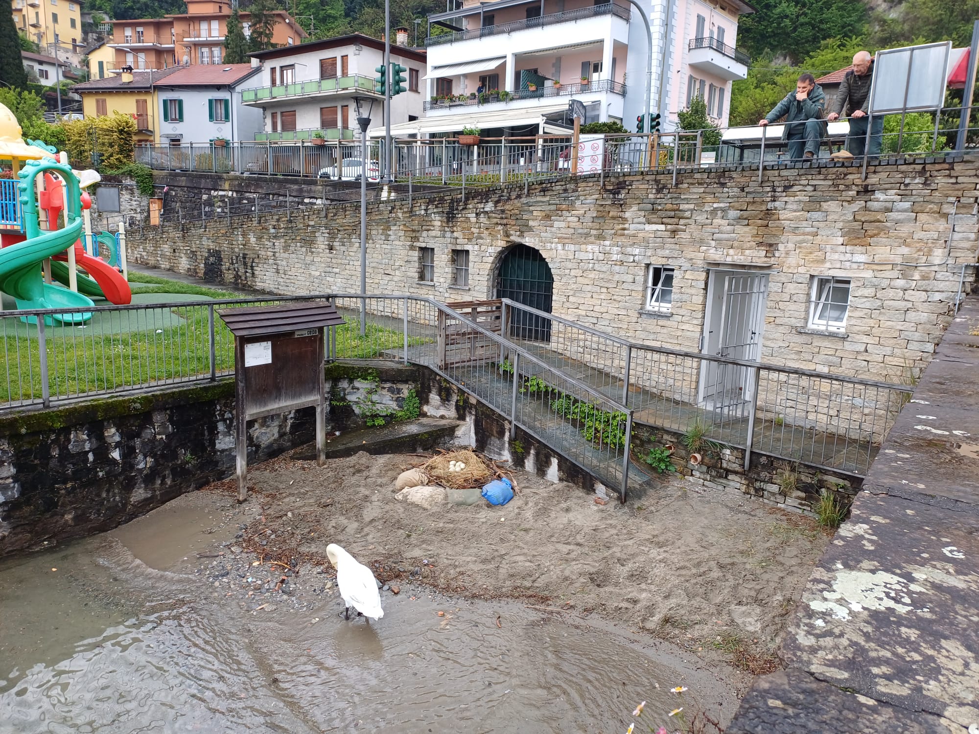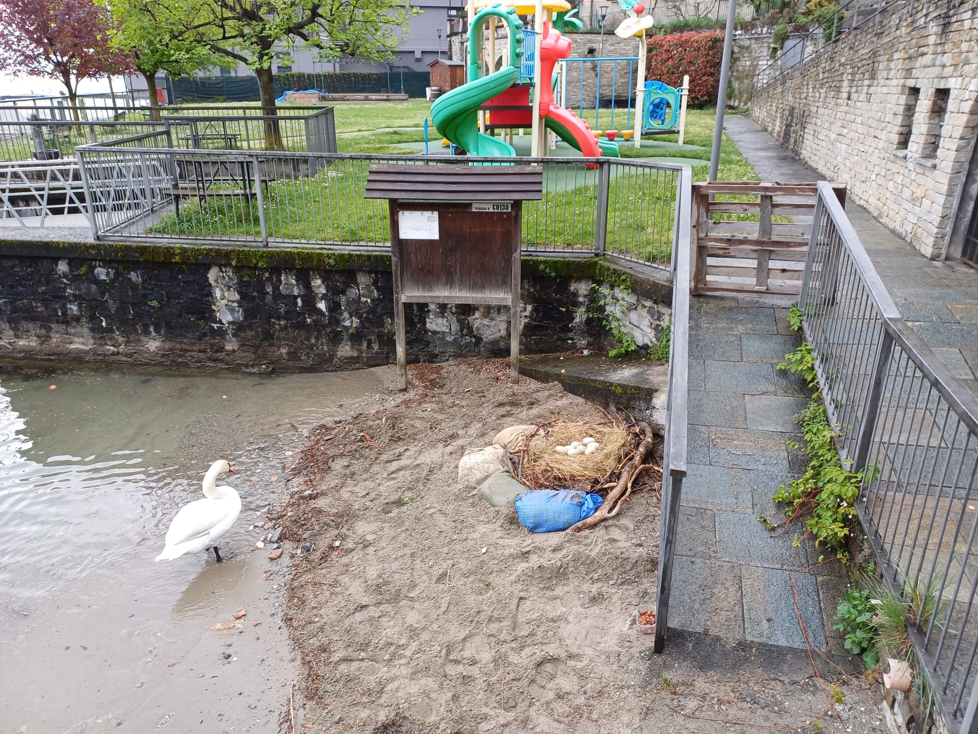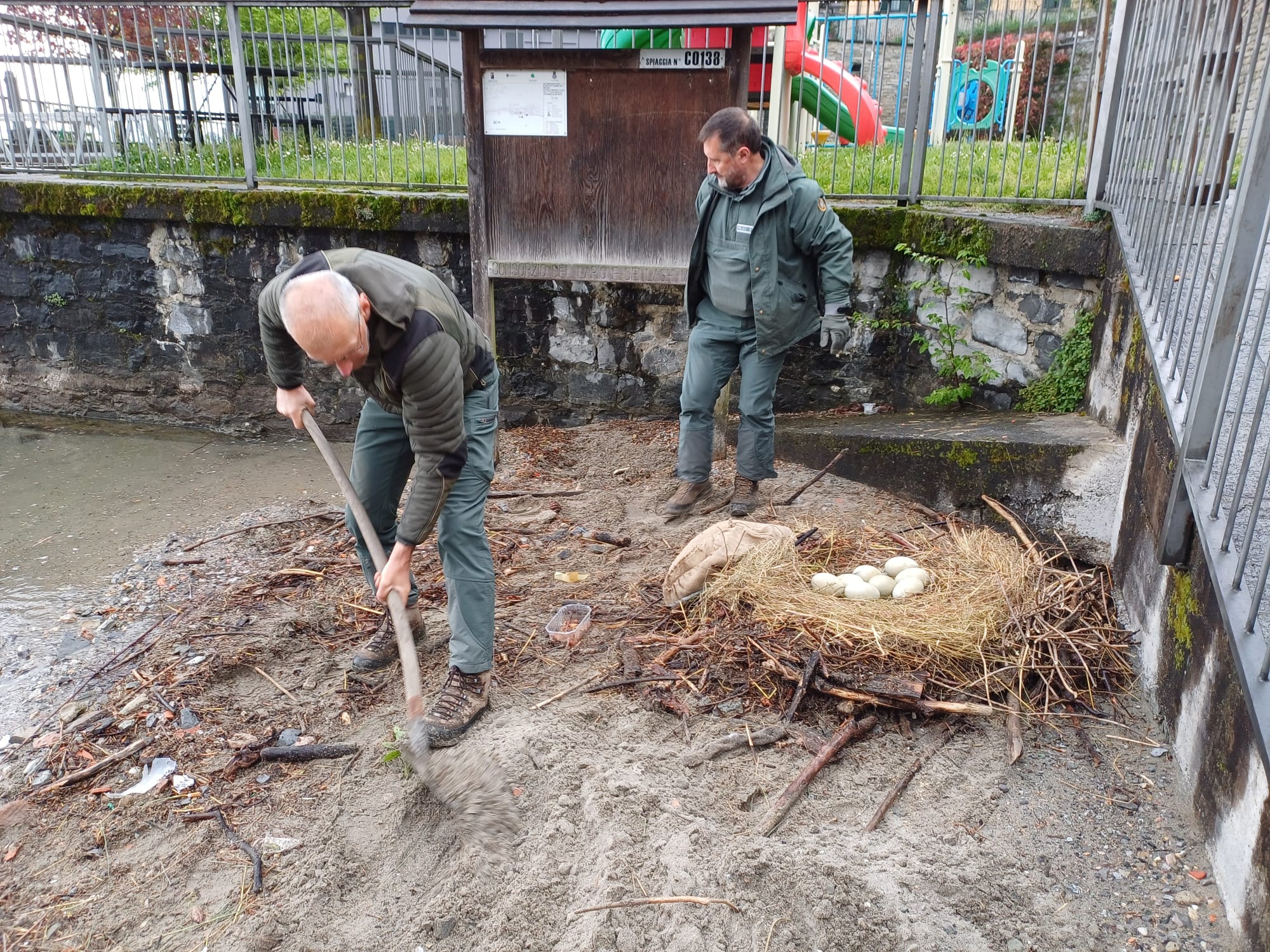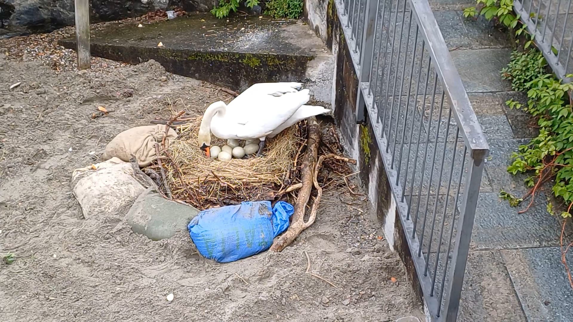 Nella giornata di Pasqua, la Polizia Provinciale di Como è intervenuta per mettere in sicurezza un nido di cigni a Menaggio, a seguito della segnalazione di alcuni residenti. Una coppia di cigni aveva deposto, circa tre settimane fa, ben otto uova – il numero massimo che può essere incubato – sulla spiaggetta di Nobiallo, in prossimità della riva.