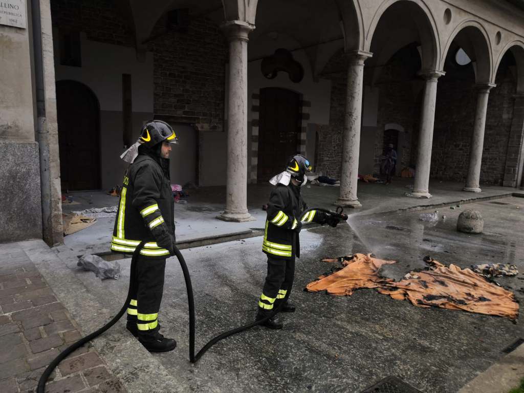 Molta paura ma fortuna nessun ferito. E’ successo stamattina, poco prima delle otto, tra le colonne dell’ex chiesa di San Francesco, zona storicamente eletta a dormitorio improvvisato da numerosi senzatetto.