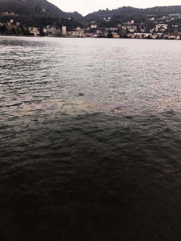 Come ci ha segnalato un lettore, una grande macchia di gasolio è comparsa sulla superficie del lago poco dopo la zona della funicolare accompagnata da un forte odore di carburante.