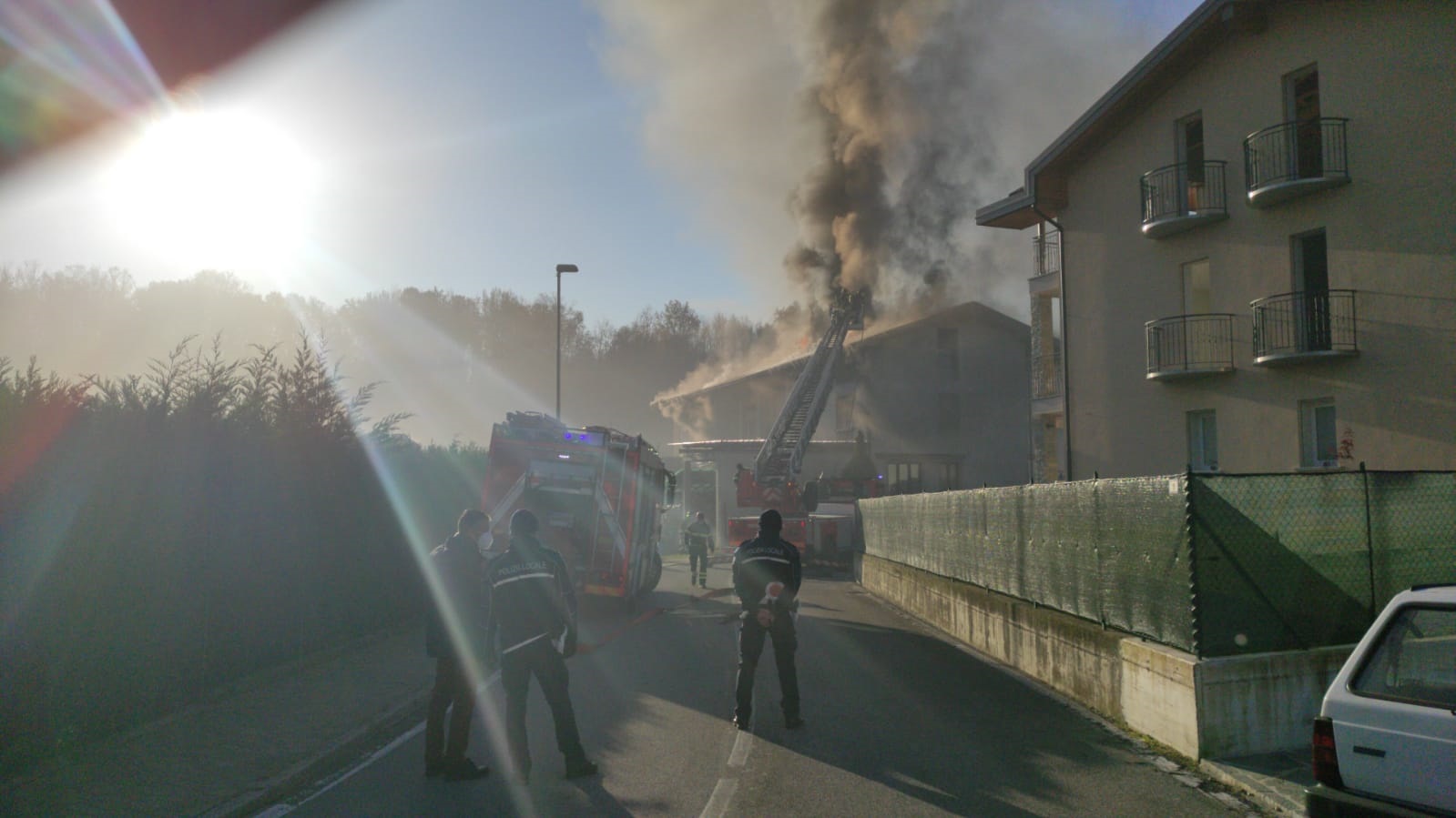 Vasto incendio intorno alle 9 di stamani a Senna Comasco, frazione Navedano.